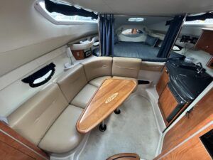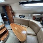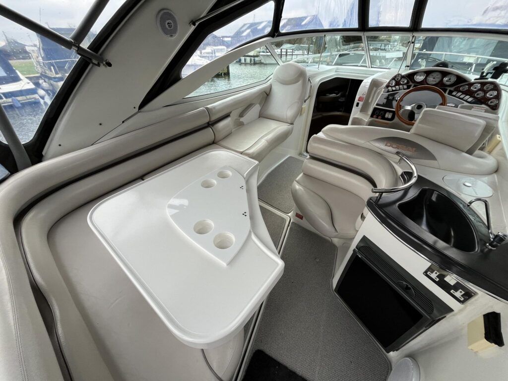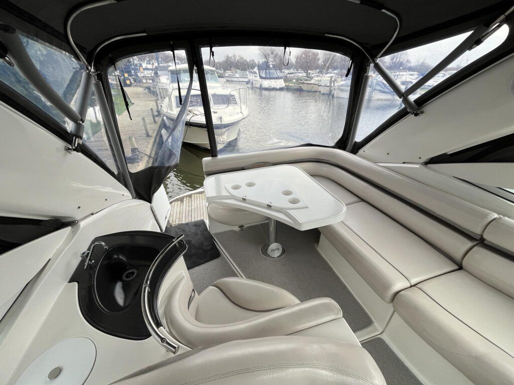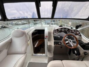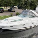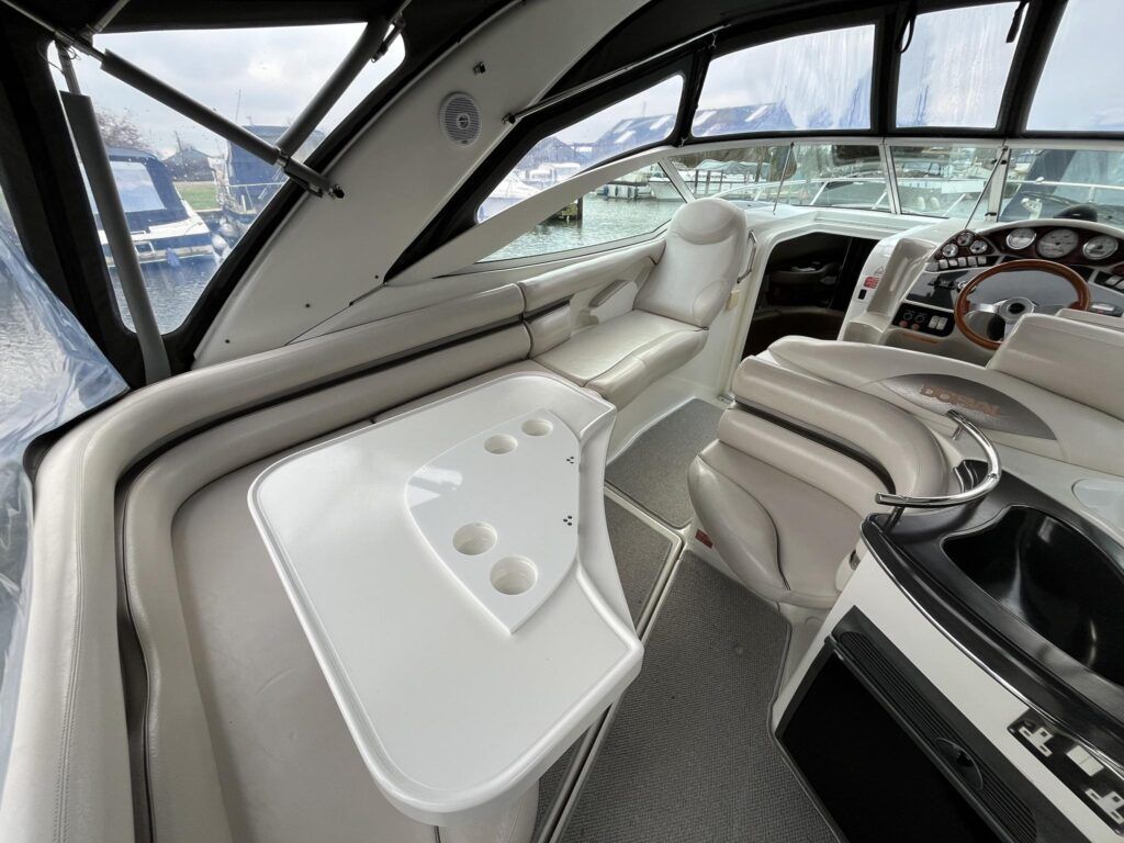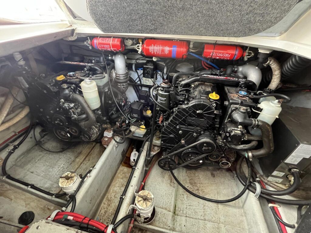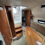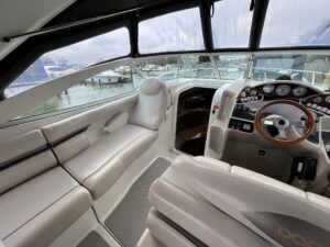 Doral Prestancia 280SE – 2004 – 2 x Mercruiser 1.7DTI 120hp diesel engines. 5 berth accommodation with a toilet and shower compartment. Specification to include; electric windlass, shore power, immersion, Eberspacher heating, holding tank and macerator, battery charger, immersion, Navman GPS, extended teak laid bathing platform, folding arch and more. BSC 10/28. An eye-catching sports cruiser with a sociable cockpit and comfortable accommodation. NYA Stock – Sold with 3 month engine and gearbox warranty.