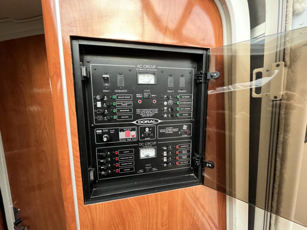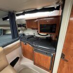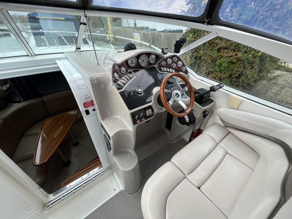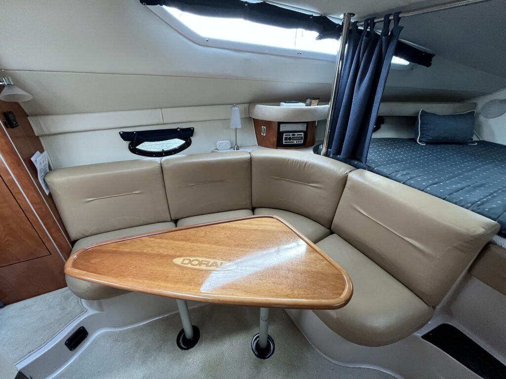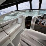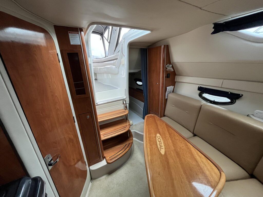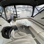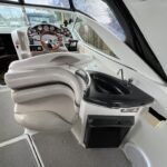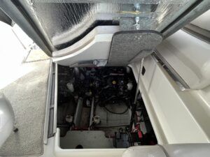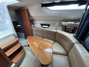 Doral Prestancia 280SE – 2004 – 2 x Mercruiser 1.7DTI 120hp diesel engines. 5 berth accommodation with a toilet and shower compartment. Specification to include; electric windlass, shore power, immersion, Eberspacher heating, holding tank and macerator, battery charger, immersion, Navman GPS, extended teak laid bathing platform, folding arch and more. BSC 10/28. An eye-catching sports cruiser with a sociable cockpit and comfortable accommodation. NYA Stock – Sold with 3 month engine and gearbox warranty.