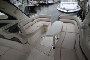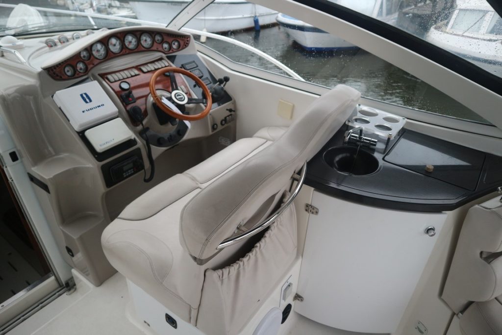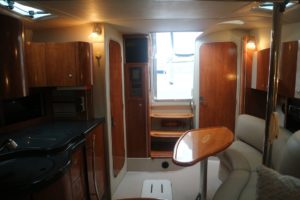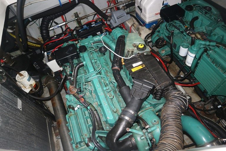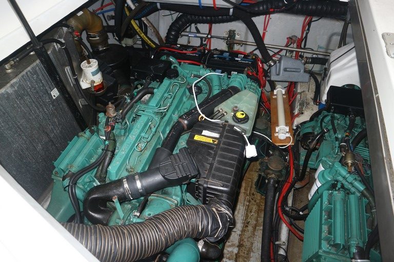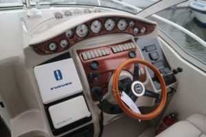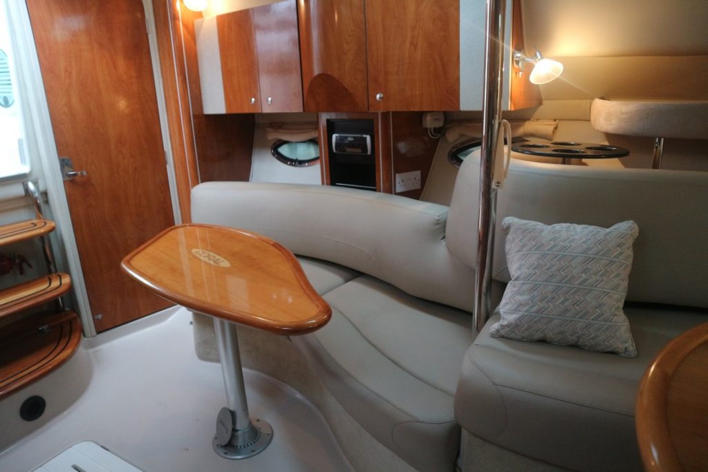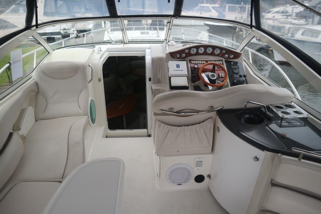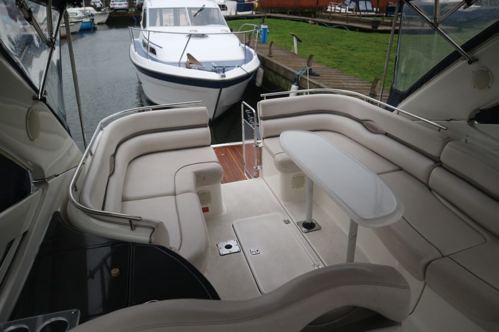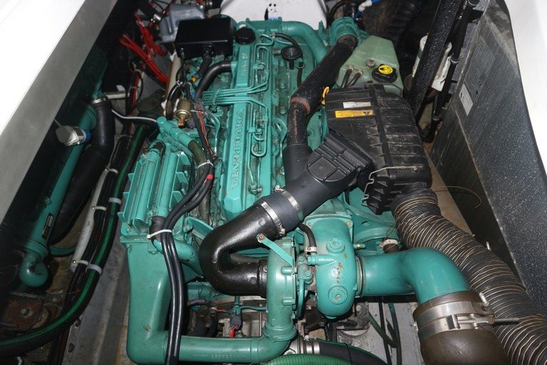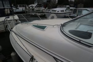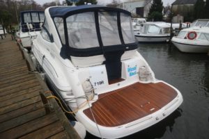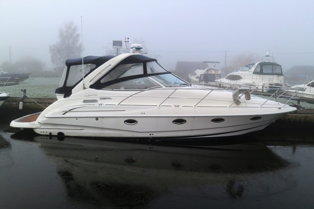 DORAL ELEGANTE – 2004 – Powered by twin Volvo KAMD300 285hp diesels. 5 berth accommodation with one toilet and one shower. Specification to include; bowthruster, Webasto warm air heating, holding tank, electric windlass, trim tabs and a range of navigation equipment! Antifoul and engine service 2018, new domestic and engine batteries 2019, new canopy 2019. Folding radar arch for increased inland access along with a large teak laid bathing platform. A surprisingly spacious sports cruiser which would make an ideal introduction into offshore cruising!