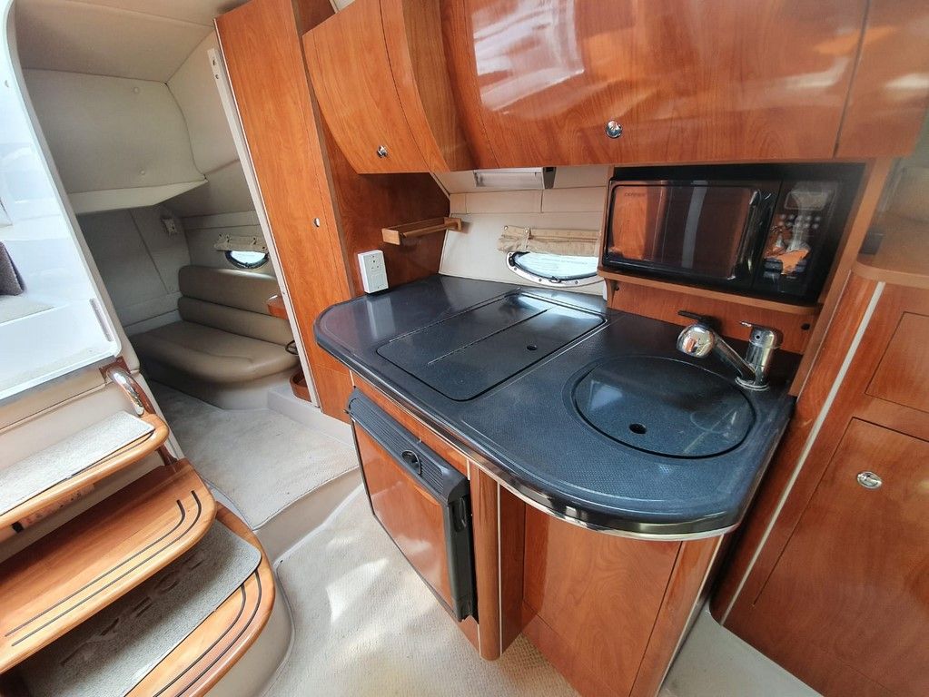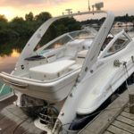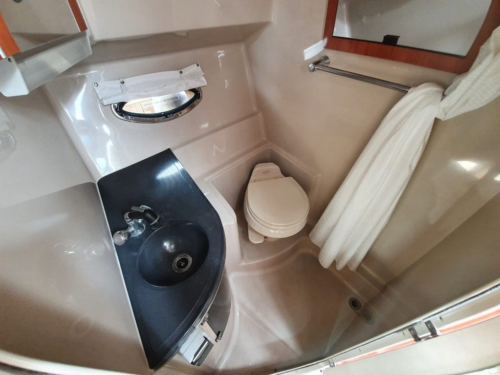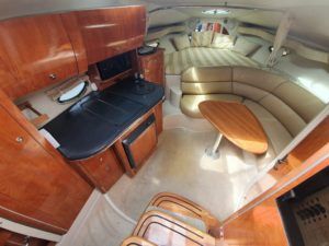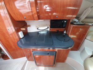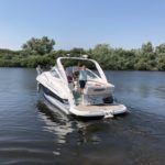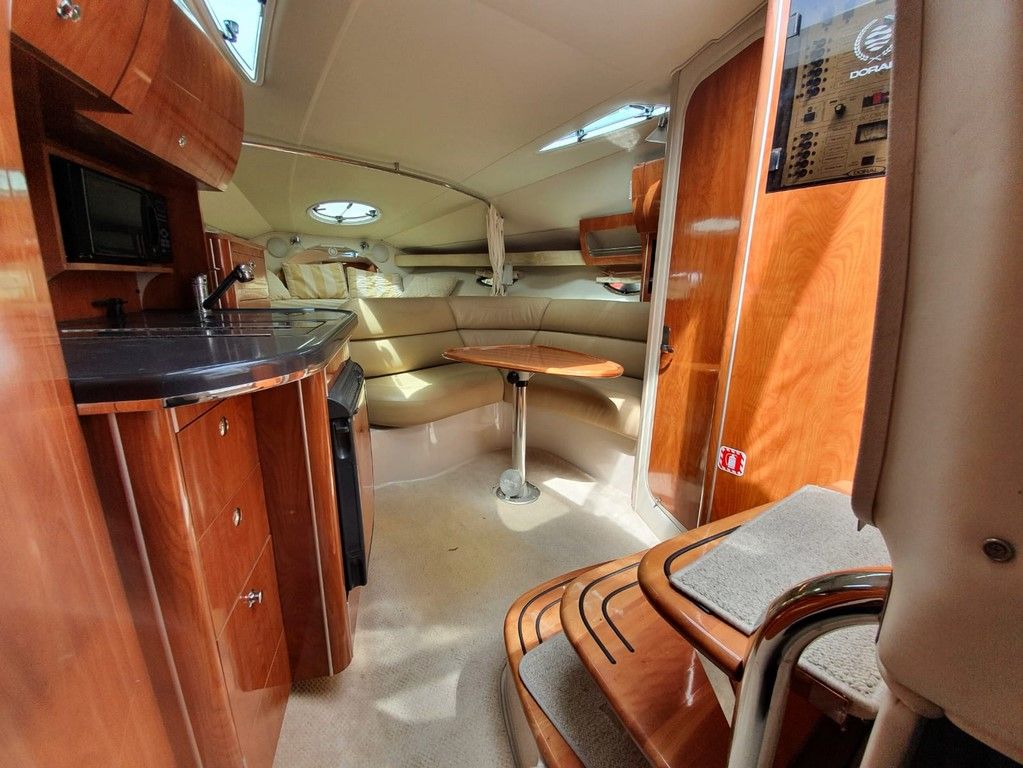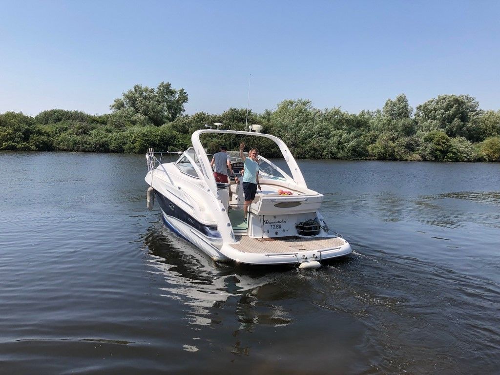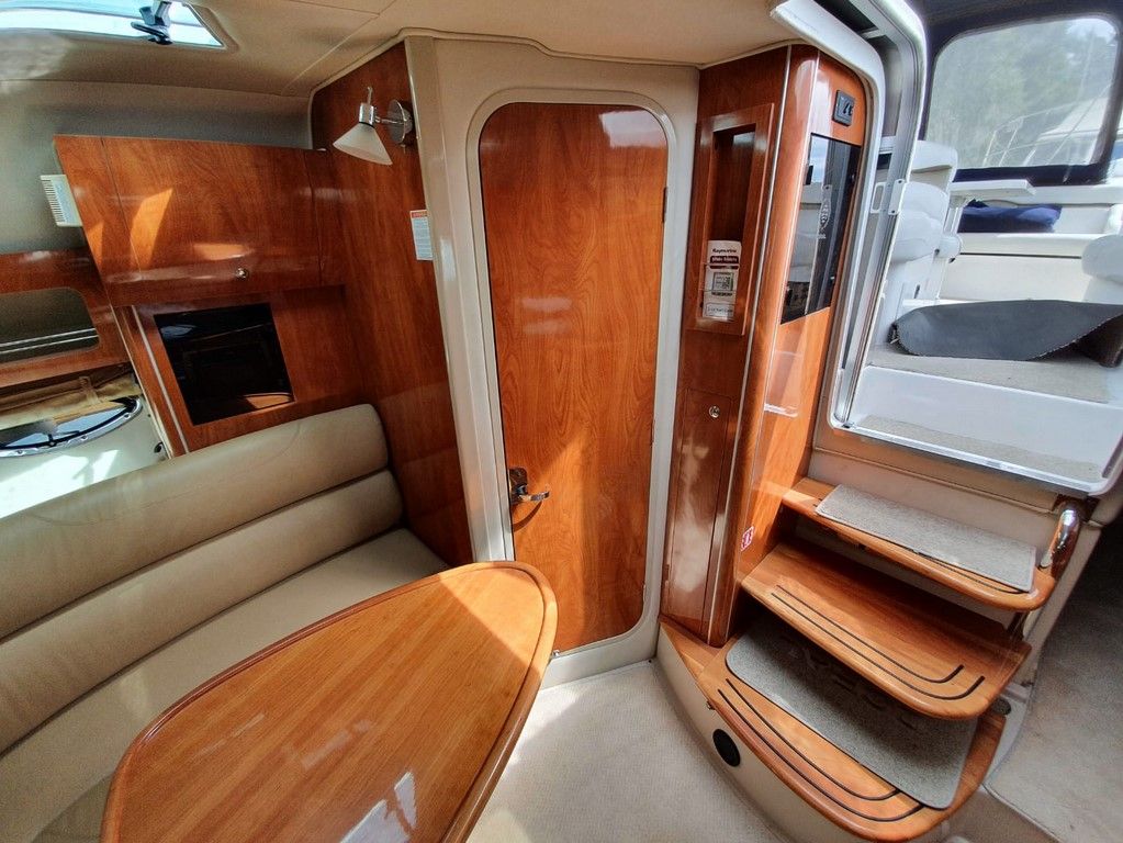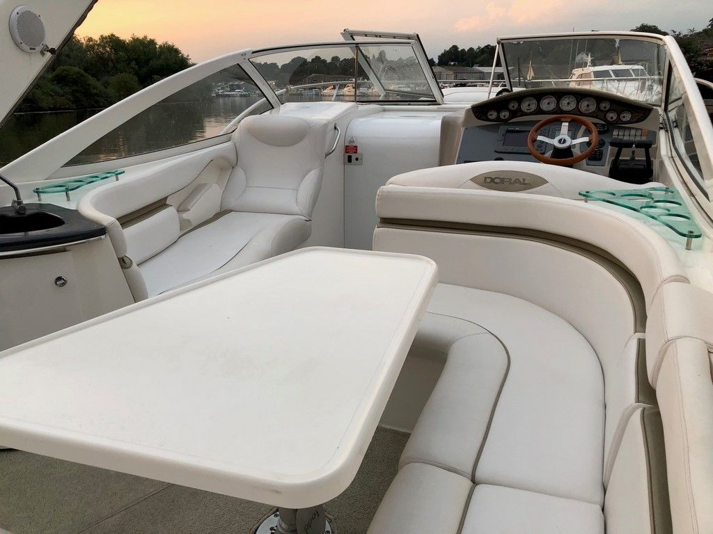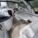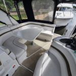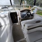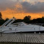 DORAL INTRIGUE – 2005 – Powered by twin Mercruiser 4.2l 230hp diesels through sterndrives. 4 berths in 1 open plan cabin with toilet and shower! Specification to include; Warm air heating, bpwthruster, folding radar arch for increased inland access, bowthruster, shore power, battery charger, Raymarine C80 chartplotter, electric windlass, VHF, holding tank and trim tabs. Lightly used with only 339 engine hours! Extended teak laid bathing platform and striking blue/white hull. A sociable sports cruiser with comfortable open plan accommodation!