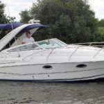 DORAL MONTICELLO 250SE – 2000, Volvo Penta 5.7GSi petrol engine (280hp). 4 berth accommodation, toilet / shower compartment, shore power, power steering, hinged radar arch, VHF, GPS, A clean example of these sleek sports cruisers. NYA stock, fully prepared by our Service Centre.