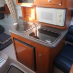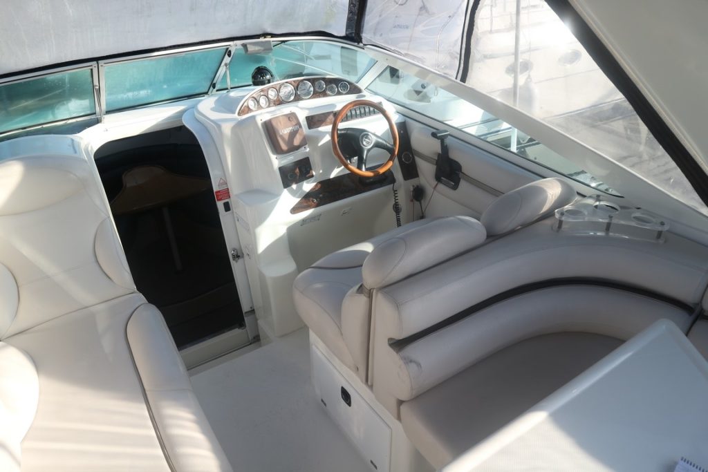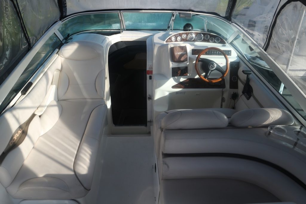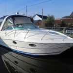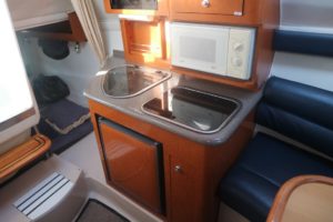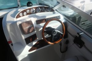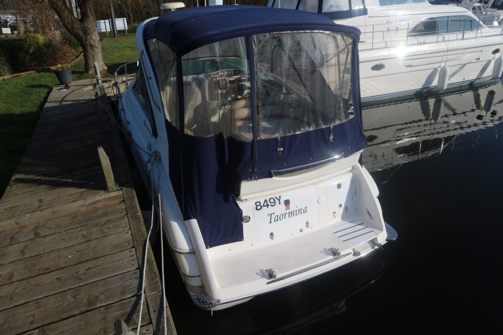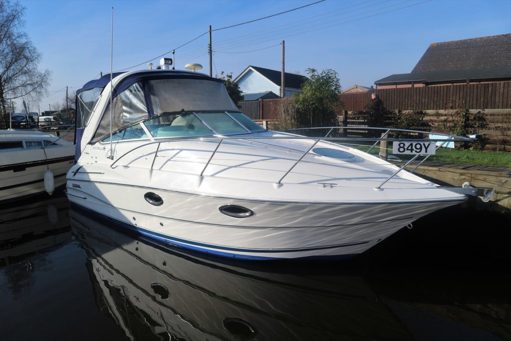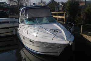 DORAL MONTICELLO 250SE – 2000 – Powered by a single Volvo 5.7GSi 280hp petrol. 4 berth accommodation with one toilet and one shower. Specification to include; holding tank, Bennett trim tabs, shore power supply with Sterling battery charger and a range of navigation equipment including Garmin GPS and Cobra VHF. Folding radar arch for increased inland access. Recent machine polish and antifoul by our Service Centre. NYA stock presented in very good order, a very clean example!
