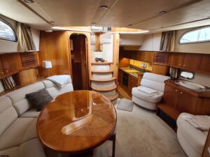 Elling E3 Ultimate – 1999 – Powered by 1 x Cummins 6BTA-5.9 370hp diesel engine with electronic throttle control. 5 berth accommodation over 3 cabins with 1 x toilet/shower compartment. Highly specified with bow and stern thrusters, generator, electric windlass, shore power, battery charger, inverter, radiator heating system, SIMRAD navigation suite, Built from Kevlar and RCD Cat ‘A’ makes this a unique boat for extended offshore cruising.
