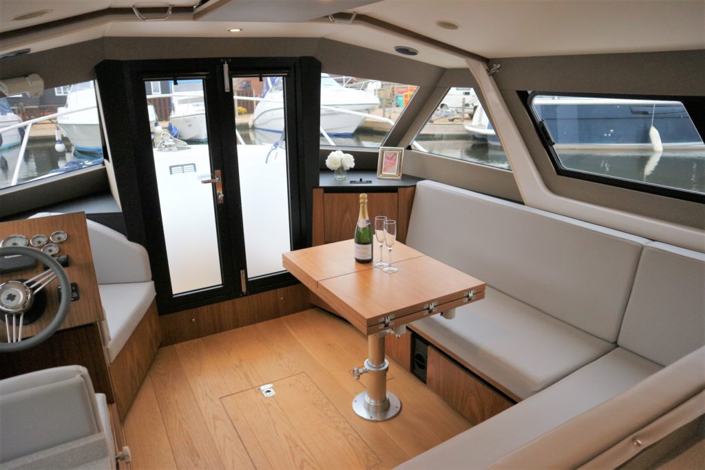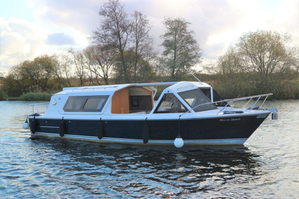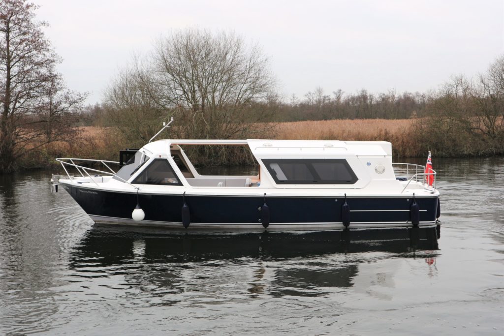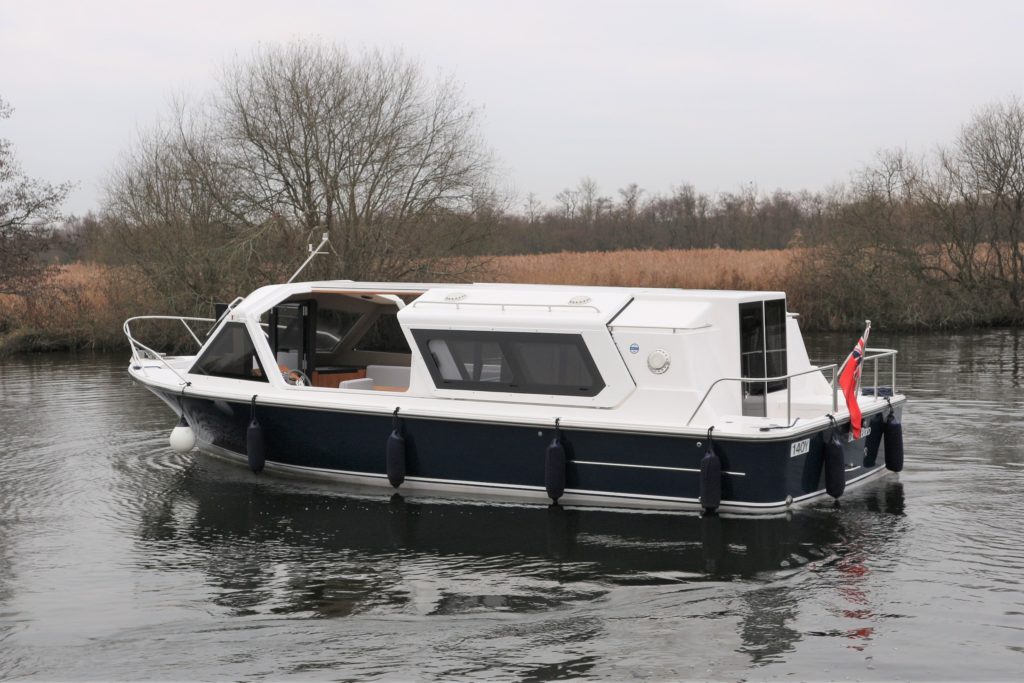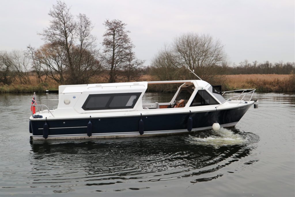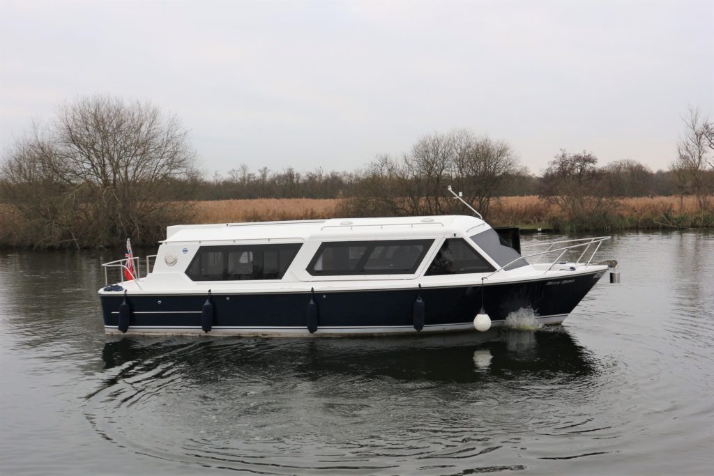 ENGLISH HARBOUR YACHTS – HERITAGE 286 – 2014 – Nanni 38hp Diesel Engine. Luxury 4 berth accommodation across 1 cabin and Saloon with 1 x toilet/shower compartment. Comprehensive specification including bow thruster, electric windlass, shore power, battery charger, inverter, immersion heater, warm air heating, speed & depth log, stunning blue hull, bonded tinted windows, solid galley surfaces, wooden flooring and more!! BSC 07/22. A beautiful example of these ever popular river cruisers, fitted out to a high standard offering the best in extended luxury cruising.