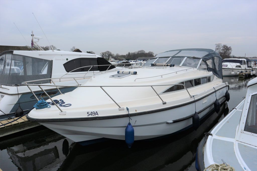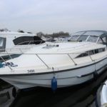 FAIRCRAFT 33 AC – 1994 – Powered by a Nanni N4.38 38hp diesel engine through shaft. 3 to 4 berth accommodation in cabin and saloon & 1 x toilet electric/shower compartment. Galley with 4 burner gas hob, oven, grill, sink, fridge and microwave. Spec including shore power, battery charger, inverter, warm air heating, GPS, synthetic teak effect flooring to cockpit and bathing platform, teak and holly effect wood laminate internal flooring, folding canopy & screens, large cockpit with seating & table. BSC 14/03/23. A spacious & modern aft cockpit river cruiser benefitting from a re-fit and more recent engine. Ideal for extended river cruising with her low air draft.