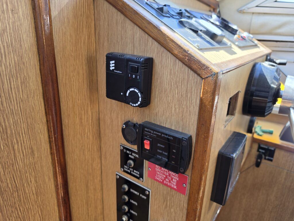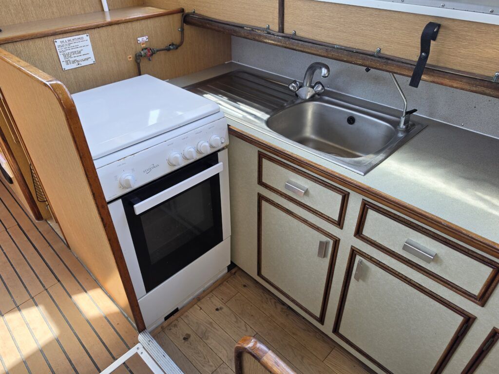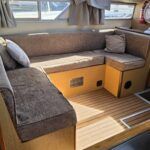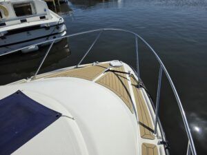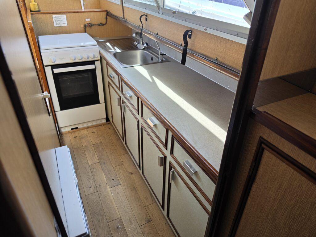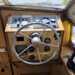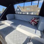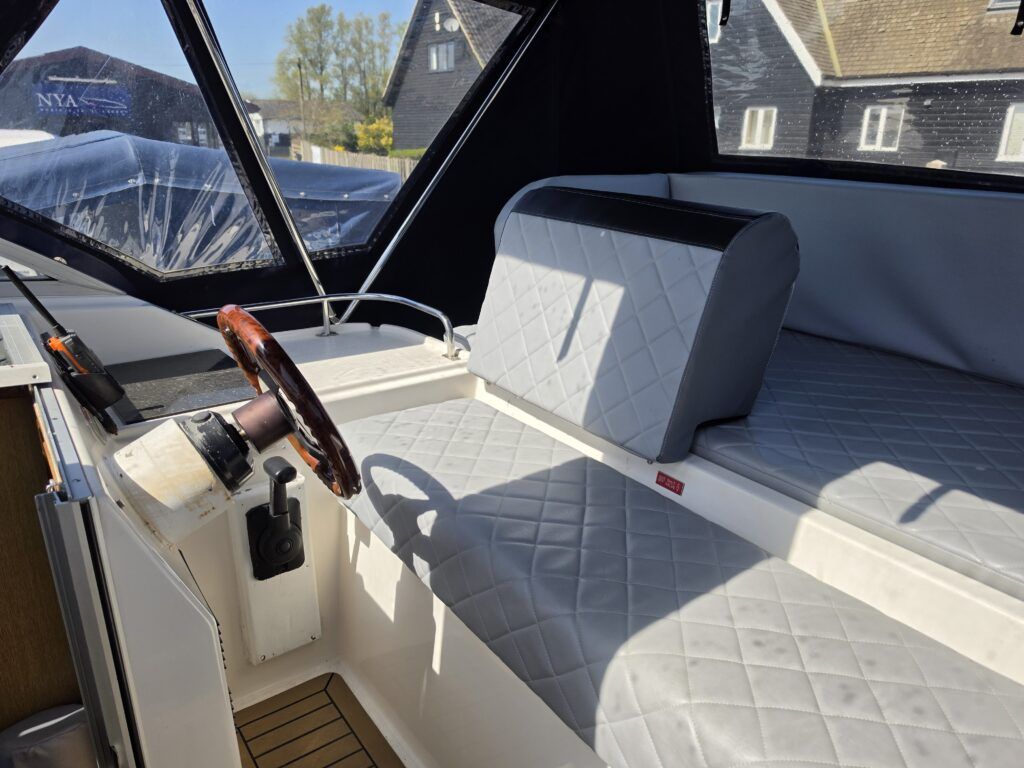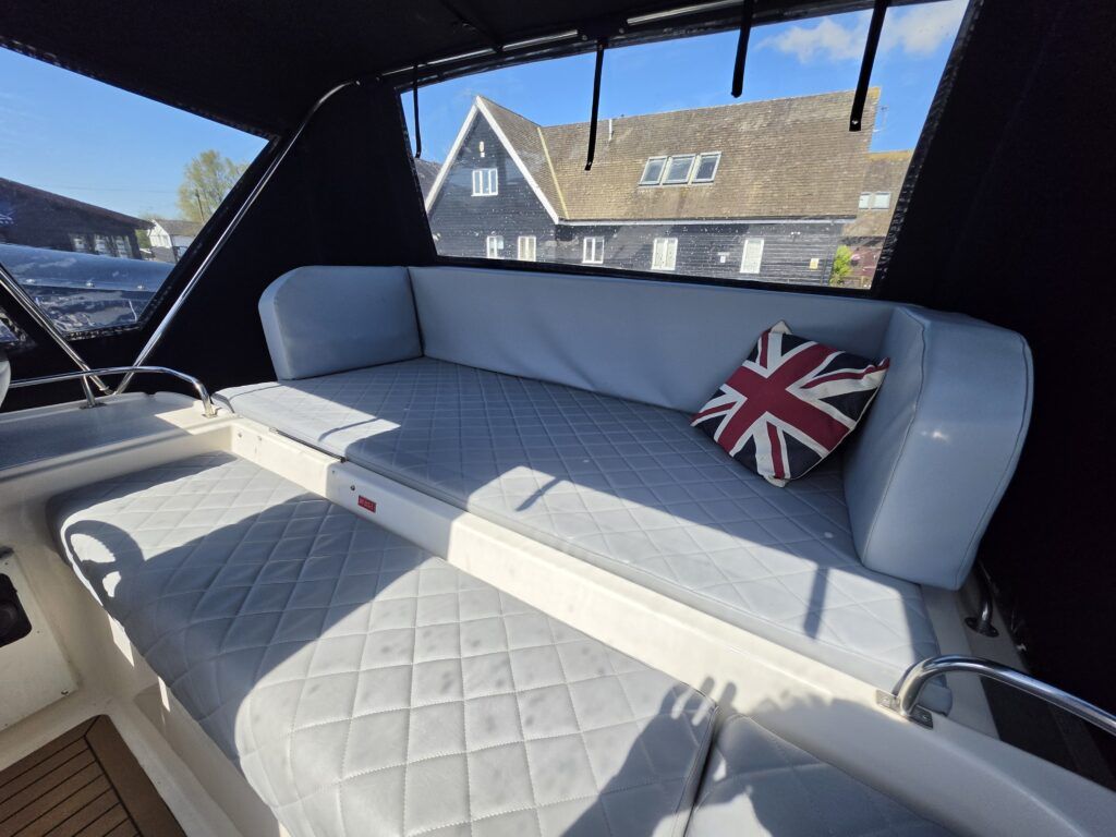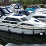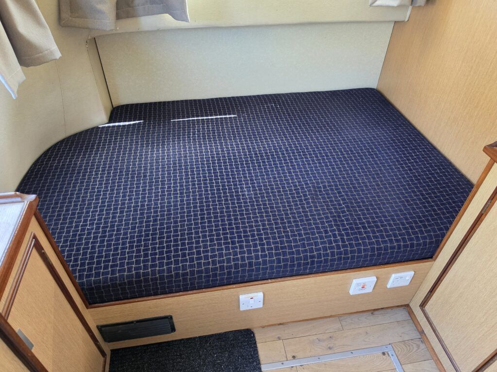 Faircraft 33 DC – 1996 – Powered by a Perkins 104-19 54hp diesel engine on shaft. 6 berth accommodation across 3 separate cabins with 2 toilet/shower compartments. Generous specification including bow thruster, shore power, battery charger, inverter, warm air heating, holding tank, immersion/calorifier, synthetic teak decks and cockpit, dual steering positions with upper deck seating and sun pad. Folding screens/canopy. Recent upholstery. BSC until 2027. Engine serviced March 2026. A practical and versatile river cruiser, ideal for family cruising or extended stays aboard, offering generous accommodation and easy aft access.