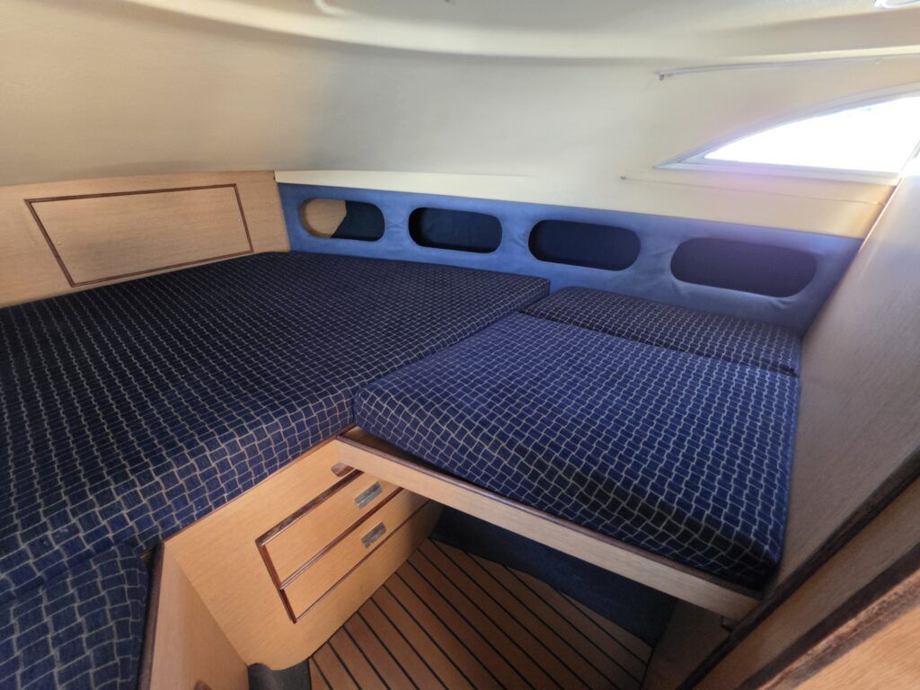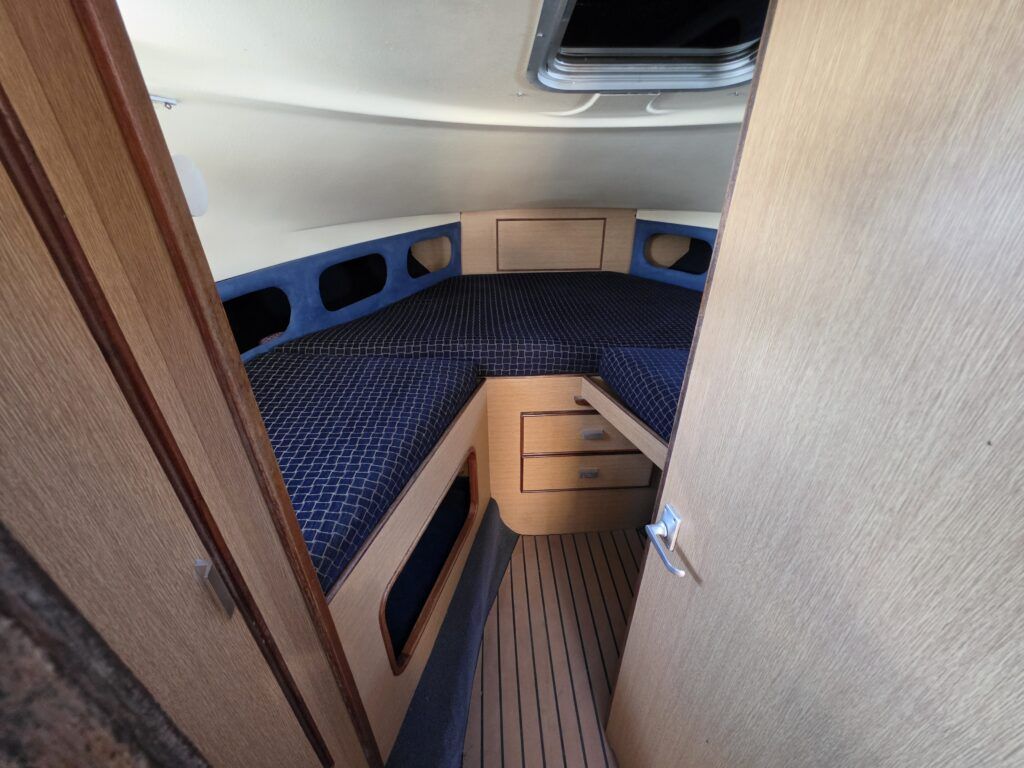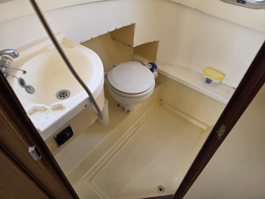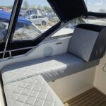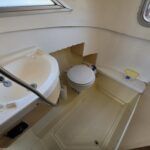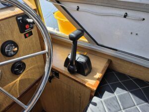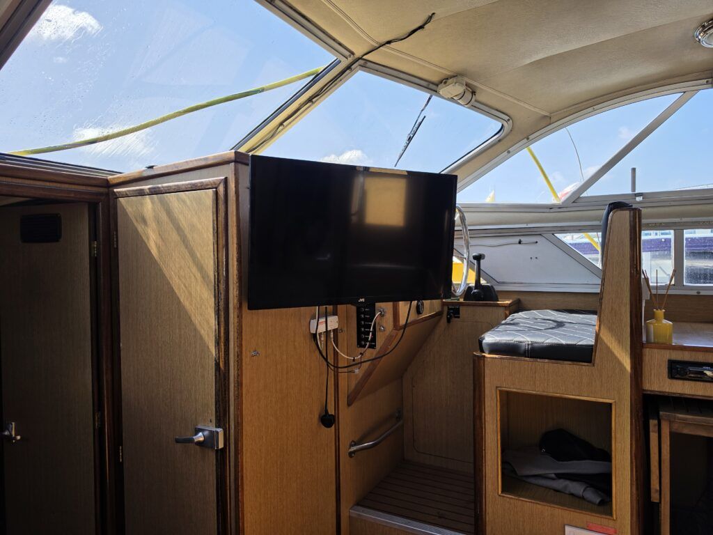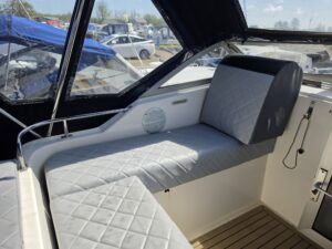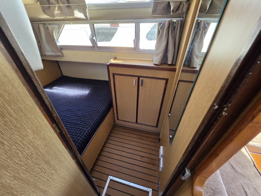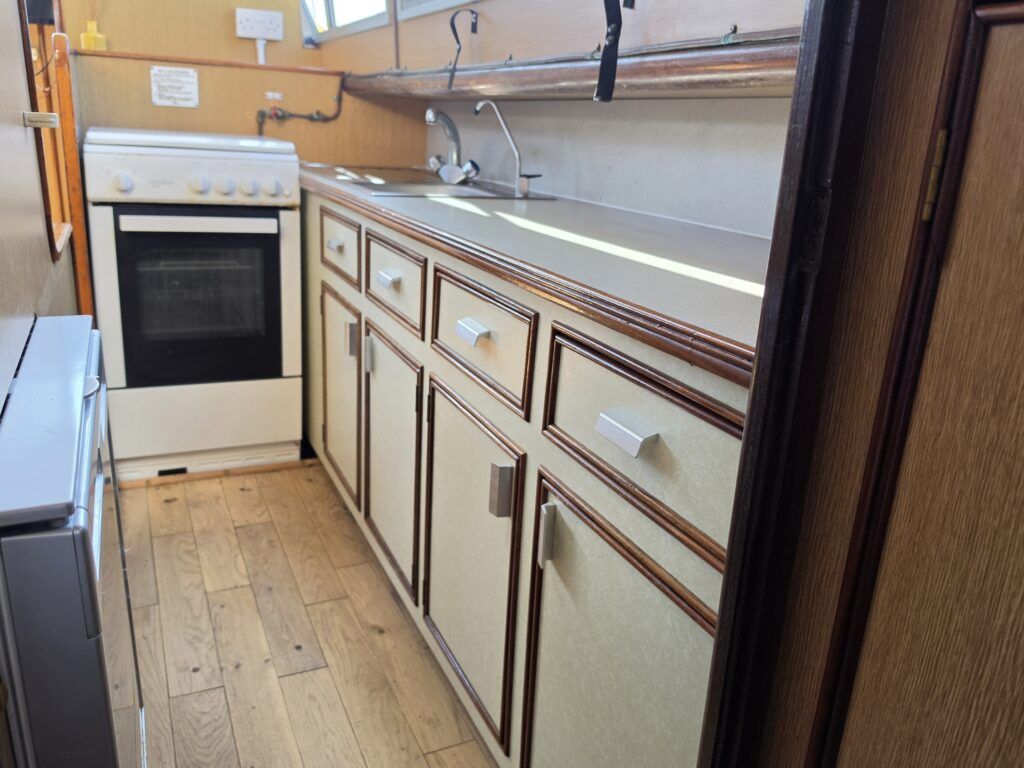 Faircraft 33 DC – 1996 – Powered by a Perkins 104-19 54hp diesel engine on shaft. 6 berth accommodation across 3 separate cabins with 2 toilet/shower compartments. Generous specification including bow thruster, shore power, battery charger, inverter, warm air heating, holding tank, immersion/calorifier, synthetic teak decks and cockpit, dual steering positions with upper deck seating and sun pad. Folding screens/canopy. Recent upholstery. BSC until 2027. Engine serviced March 2026. A practical and versatile river cruiser, ideal for family cruising or extended stays aboard, offering generous accommodation and easy aft access.