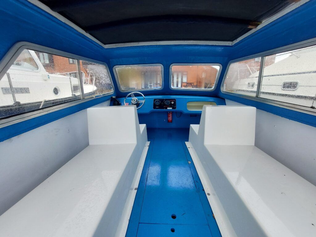 Faircraft Day Boat – Circa 1983 – Single Beta 10hp 2 cylinder diesel in-board engine through a shaft. Seating for up to 9 people. Specification to include; GPS speedometer, cushions, folding canopy. A practical and economical day boat, ideal for spending time exploring the quieter reaches of the Norfolk Broads with family and/or friends. BSC 08/04/2028