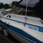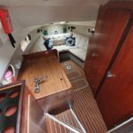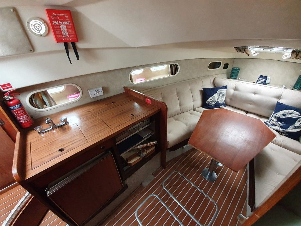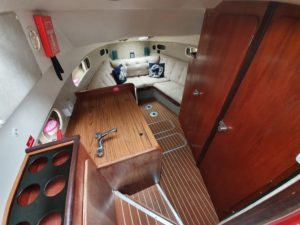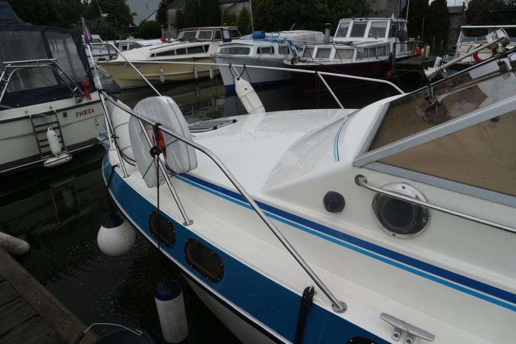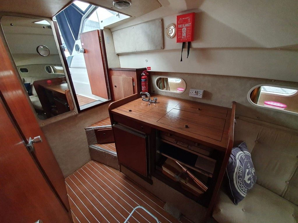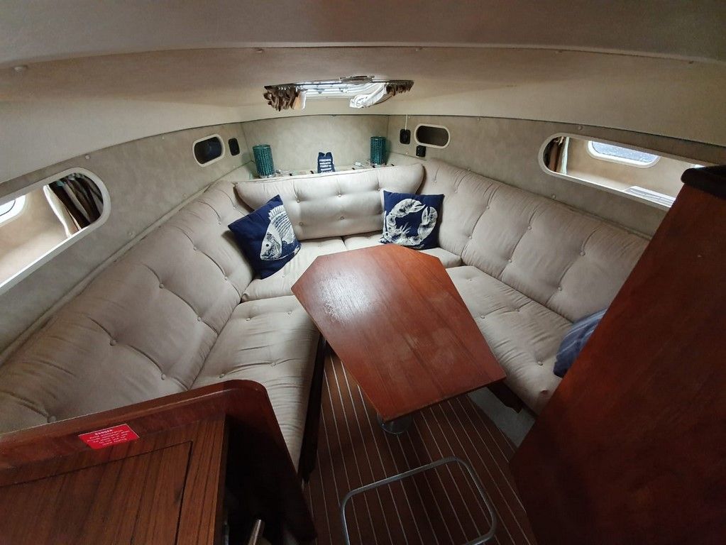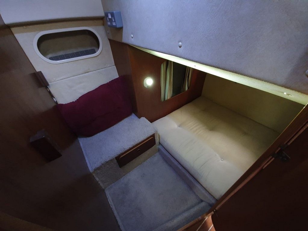 FAIRLINE 26 SUNFURY – 1983 – Single Volvo 165HP Diesel Engine. Four berths with one sea toilet and shower. Specification to include; Trim tabs, VHF, calorifier and shore power with battery charger and immersion heater. Folding canopy framework for increased inland access. Recent teak deck effect flooring covering throughout. Single diesel economy. A superb introduction to offshore cruising.