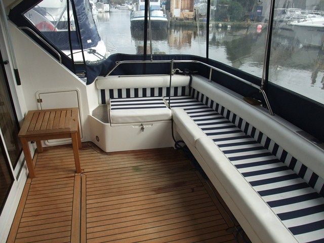 FAIRLINE 36 SEDAN – 1990, 2 x Volvo TAMD61 306hp Diesel Engines. 6 berth, seatoilet/shower, heating, well equipped galley. Recent canopies, leather upholstery and curtains, shore power, GPS, autopilot, teak laid cockpit. Excellent saloon space, perfect for a big family. Superb example, fully prepared by our Service Centre. NYA Stock.