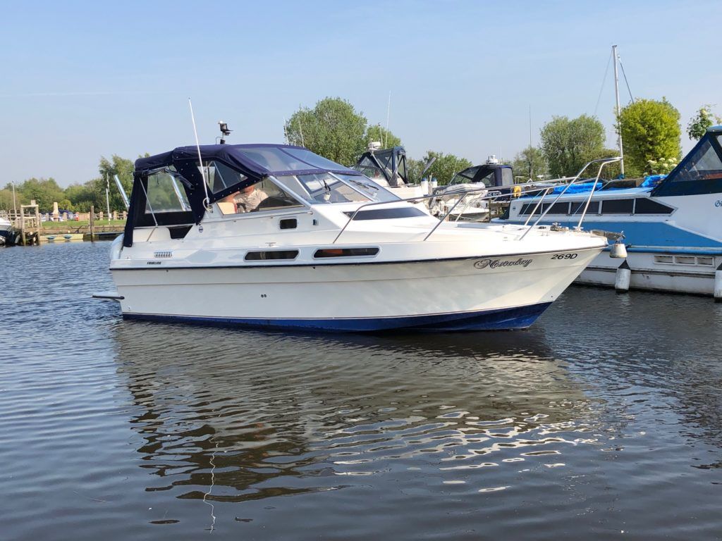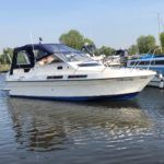 Fairline Carrera – Circa. 1989 – Powered by twin Volvo AQ151 146hp petrols. 4 berth accommodation with one sea toilet and one shower. Specification includes, Electric windlass, Trim tabs and shore power supply with immersion. Recent full machine compound and polish, hull antifoul, new carpets and interior upholstery all in 2020, new head on port engine fitted 2021. An exceptional example.