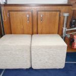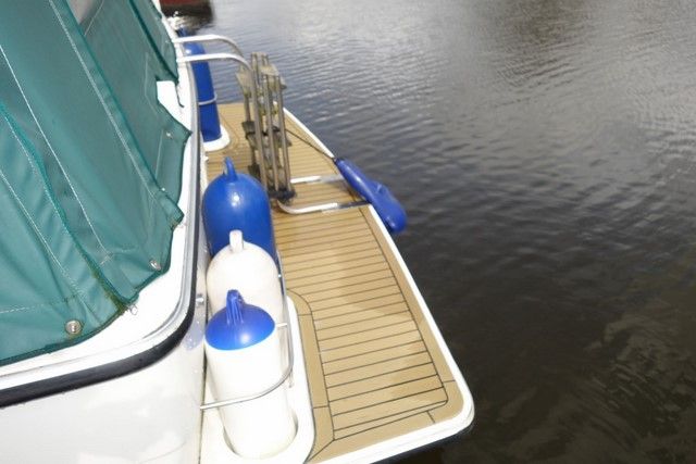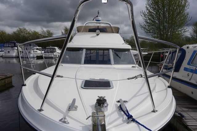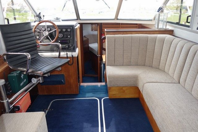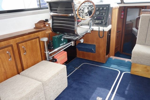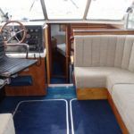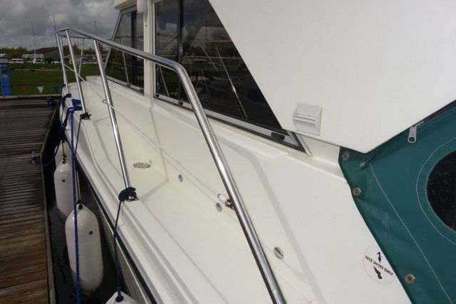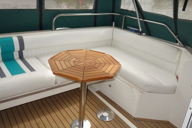 FAIRLINE CORNICHE 31 – 1989, 2 x Volvo TAMD41B 200hp diesel engines on shaft, 4 berths via the dinette layout, Toilet (new) and shower, heating, synthetic teak cockpit and bathing platform, full canopies, new saloon upholstery, 2 x Raymarine A65 chart plotters, VHF, radar, bow thruster, new fuel tanks and fuel system fitted 2009, Excellent example of the popular Corniche series. Very light boat with a modern feel.