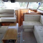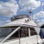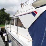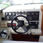 FAIRLINE CORNICHE 31 – 1985 – Twin Volvo Penta TAMD 30A 110HP Diesel engines. 4 berths in 2 cabins with 1 toilet and shower. Trim tabs, VHF radio, Davits, Radar, Holding tank with diverter valve Tender and outboard included. A very desirable and solidly built flybridge cruiser.