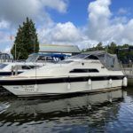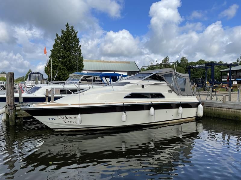 Fairline Fury 26 – Built circa 1980 – Powered by Twin Mercury 60hp Outboard engines. 4 berth accommodation in a light airy open plan cabin with a separate toilet and shower compartment – Galley with Smev 2 burner hob, separate grill and sink – Specification to include; shore power supply with 240v sockets, Truma gas immersion, holding tank, Garmin fishfinder, Navman tracker 5505, VHF. It is well presented in its original gel coat and offers an affordable introduction to boating with a spacious cockpit for entertaining—a stylish classic with upgraded modern Mercury outboard engines.