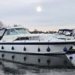 Fairline Mirage 29 – Circa. 1976 – 2x Volvo AQ130 petrol’s through sterndrives – 5 berth accommodation with toilet and shower. Specification to include; Bow thruster, electric windlass, shore power supply with 240v immersion, Sterling Power battery charger and 240 sockets, Raymarine ST40 speed log. Refitted galley with Smev oven/grill and 2 burner hob. BSC 2027. Engines serviced 2024. New domestic batteries. A spacious and versatile family cruiser that appeals to both inland and coastal cruising.