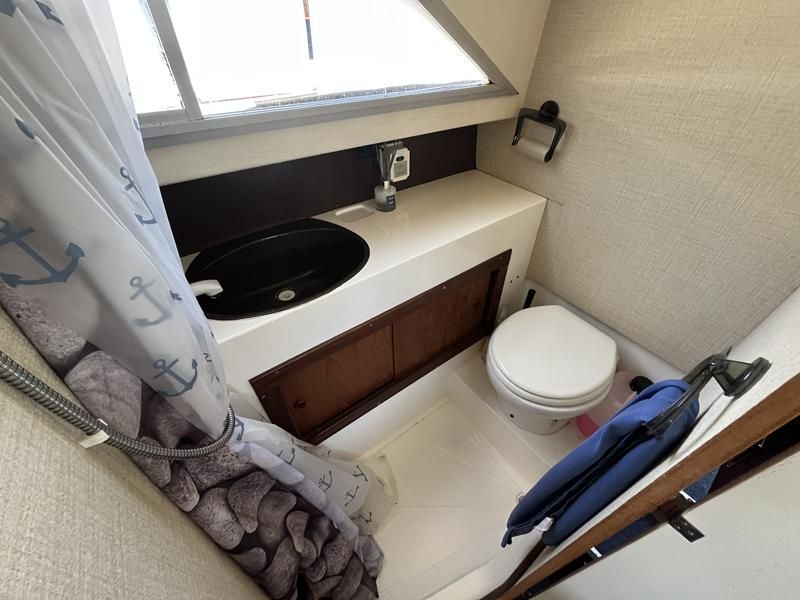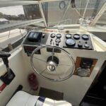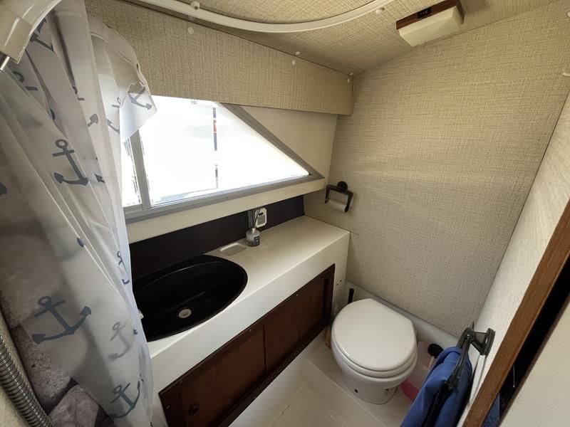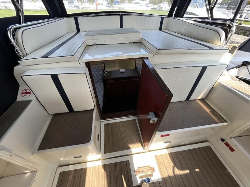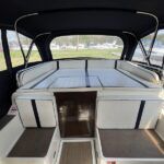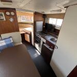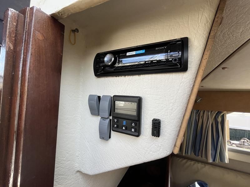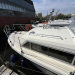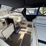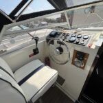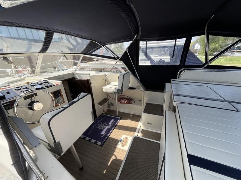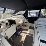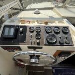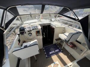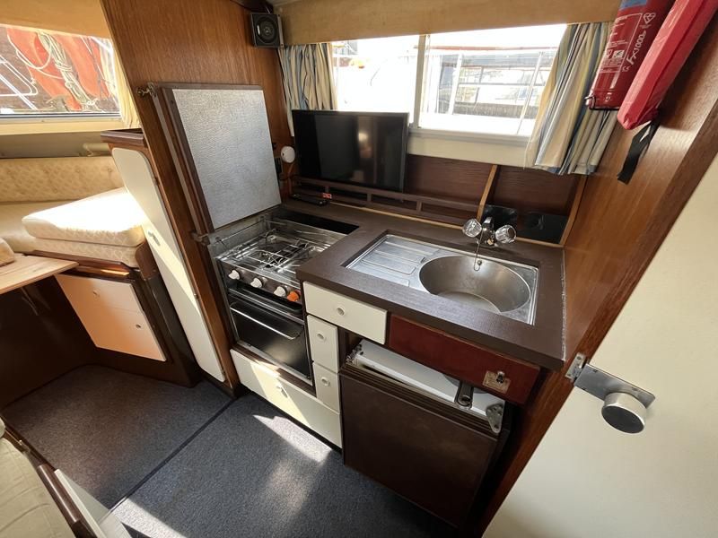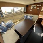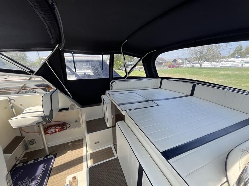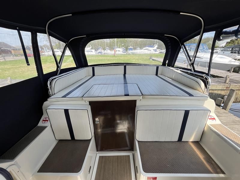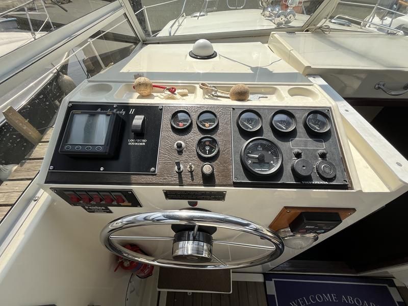 Fairline Mirage 29 Aft Cabin – Circa 1982 – Powered by a single Volvo MD31A 60hp diesel through a shaft. 6 berth accommodation across two cabins with 1 x toilet & shower. Specification including bowthruster, warm air heating, electric toilet to holding tank, shore power battery charger. BSC 03/26. Folding screens and canopy significantly reducing the air draft for increased inland access. An ideal vessel for extended inland cruising offering single diesel economy and sought after shaft configuration.