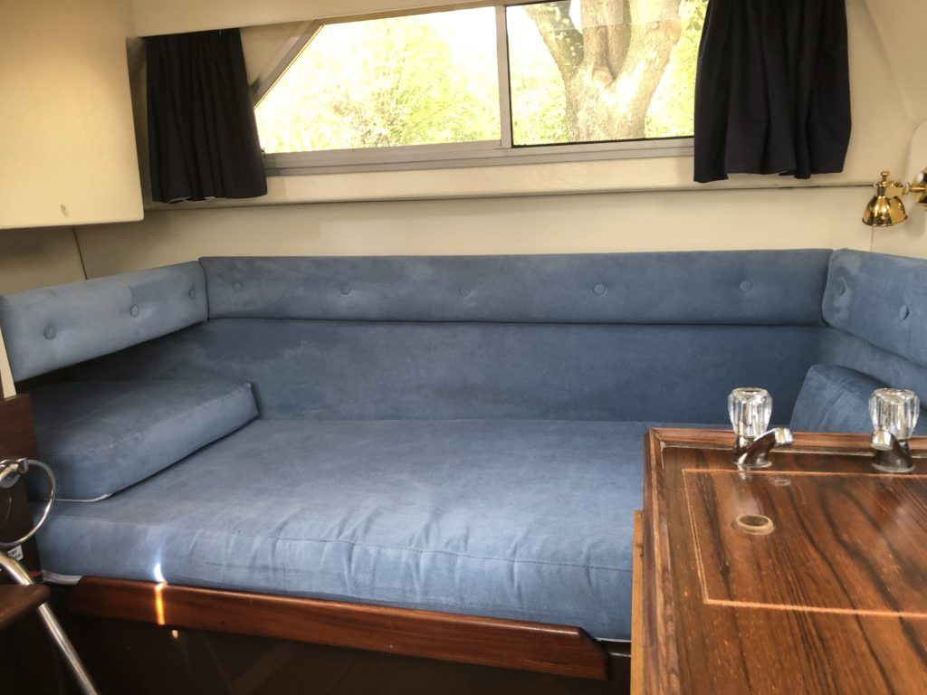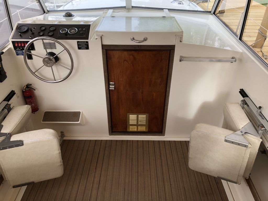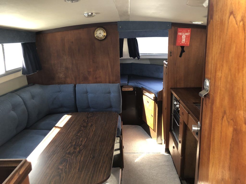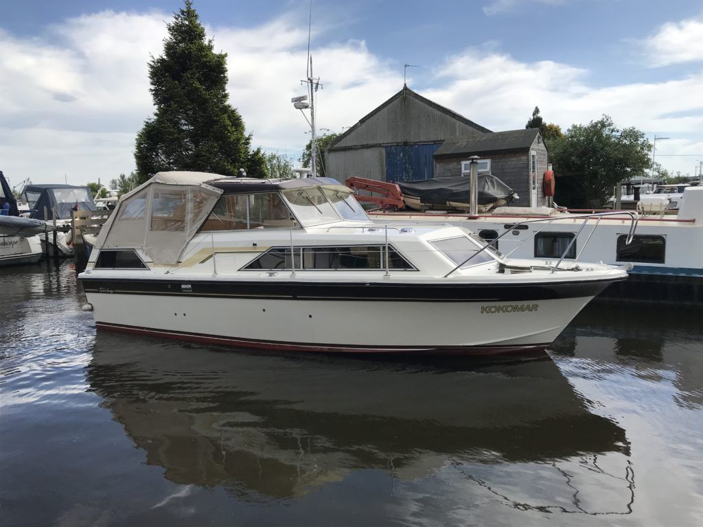 FAIRLINE MIRAGE AFT CABIN – Circa 1983 – Single Perkins 4.108 diesel on a shaft – serviced April 2020, 6 berths, sea toilet and shower, boat safety certificate expires April 2022. The rare aft cabin version of the mirage is a very different craft offering additional accommodation and is aimed primarily as a quality and capable inland cruiser. Kokomar is in excellent condition and has had a new toilet, new fridge, compound and polish, hull antifoul and including the NYA 3 month engine warranty. A very good example that is well worth a look