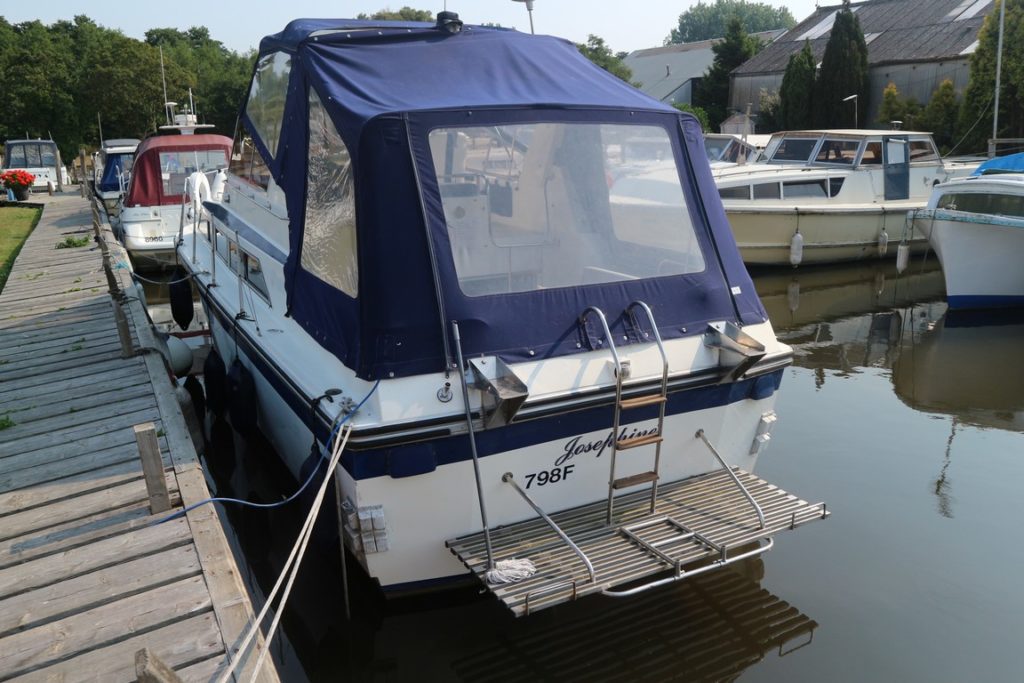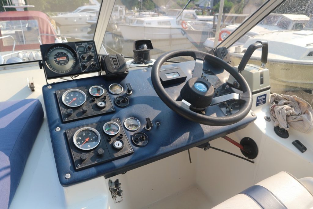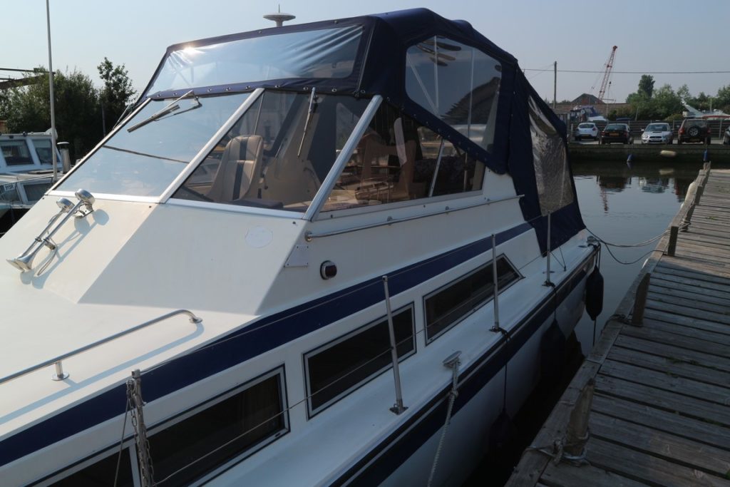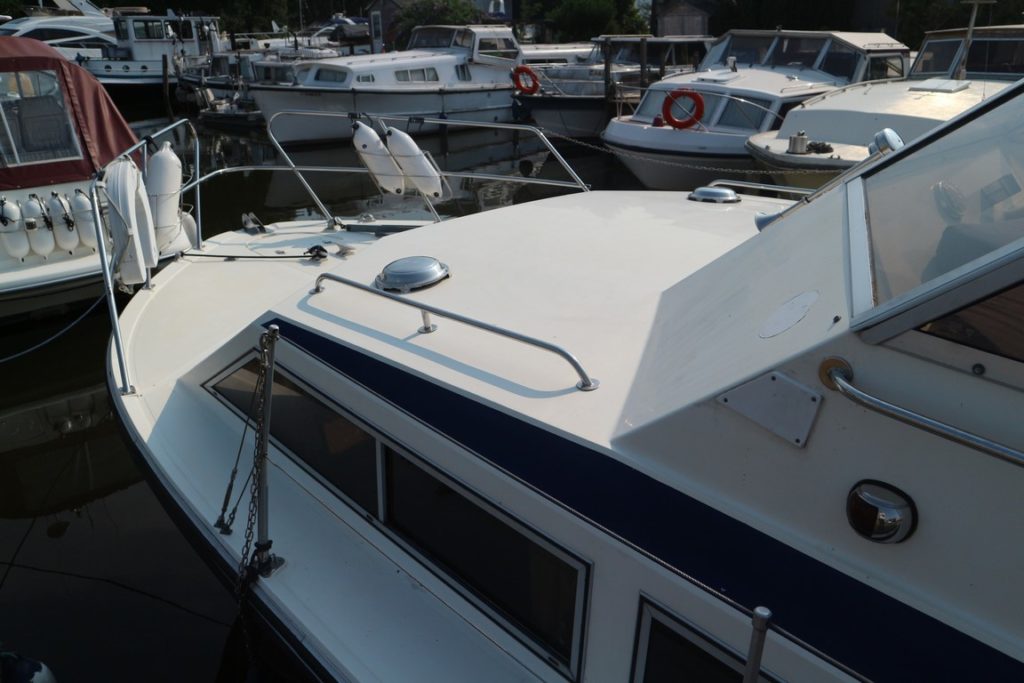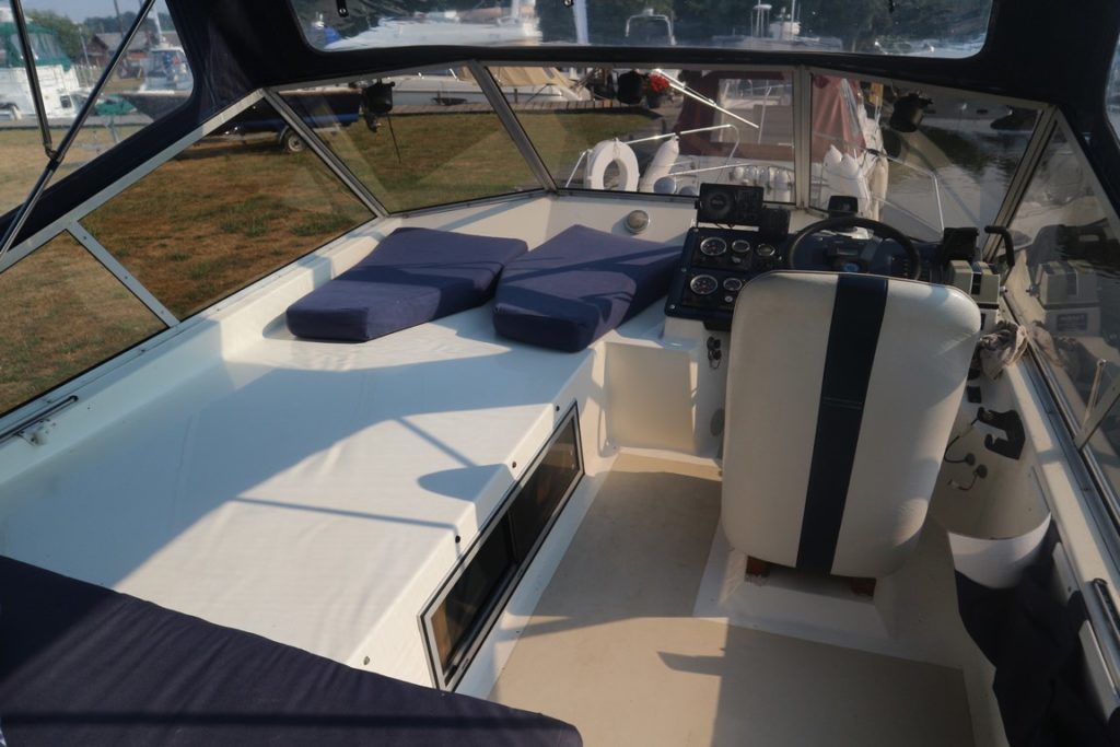 FAIRLINE PHANTOM 32 – 1979, 2 x Volvo AQ120 120HP petrol engines, surprisingly spacious accommodation for 5 with 1 toilet and shower facility. BSSC until March 2019 . Specification to include, holding tank, shore power with battery charger and warm air heating fitted 2015, re-upholstered 2015. Antifouled 2018. Well maintained example.