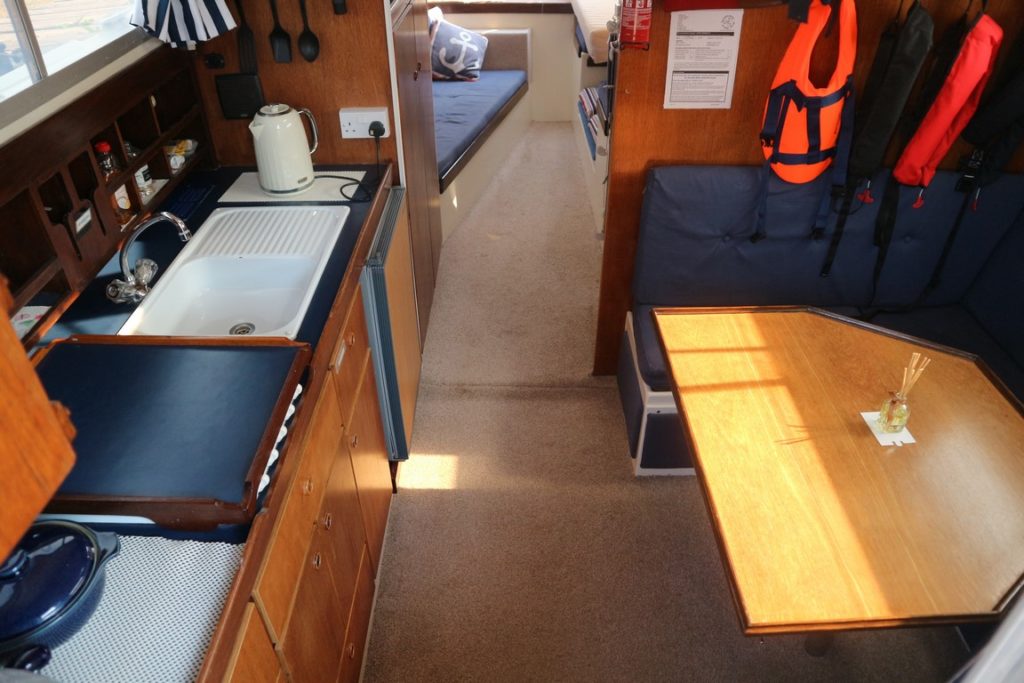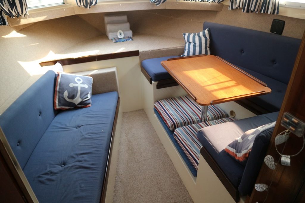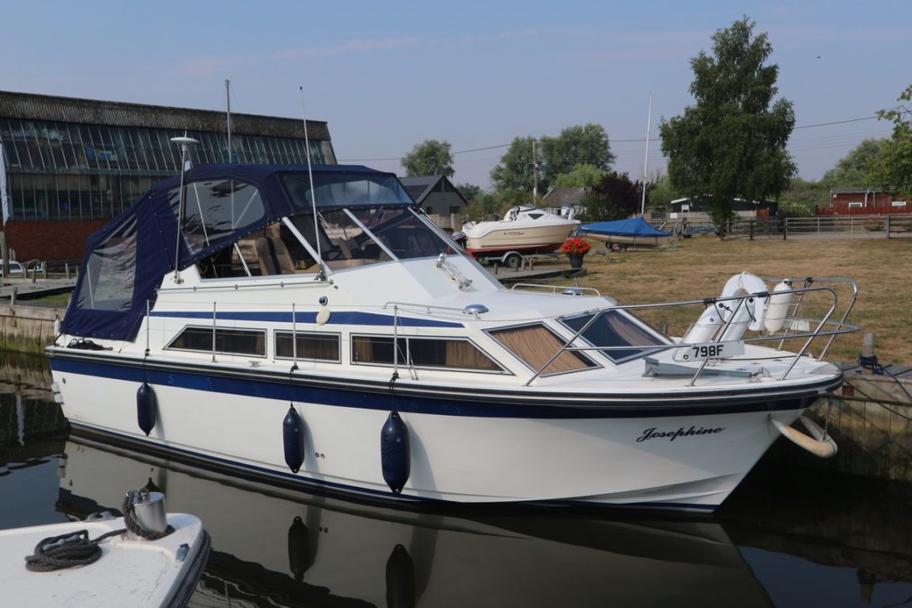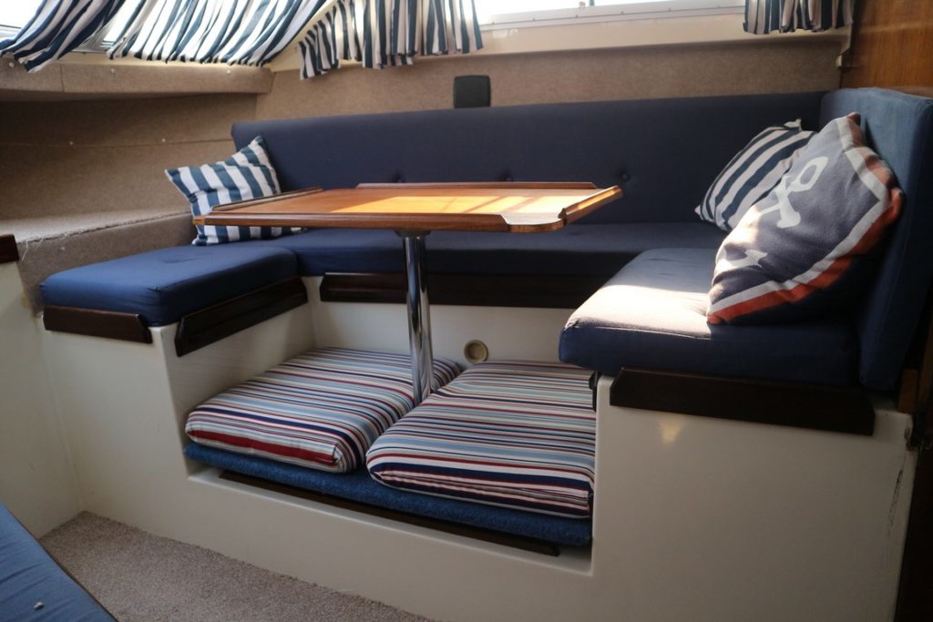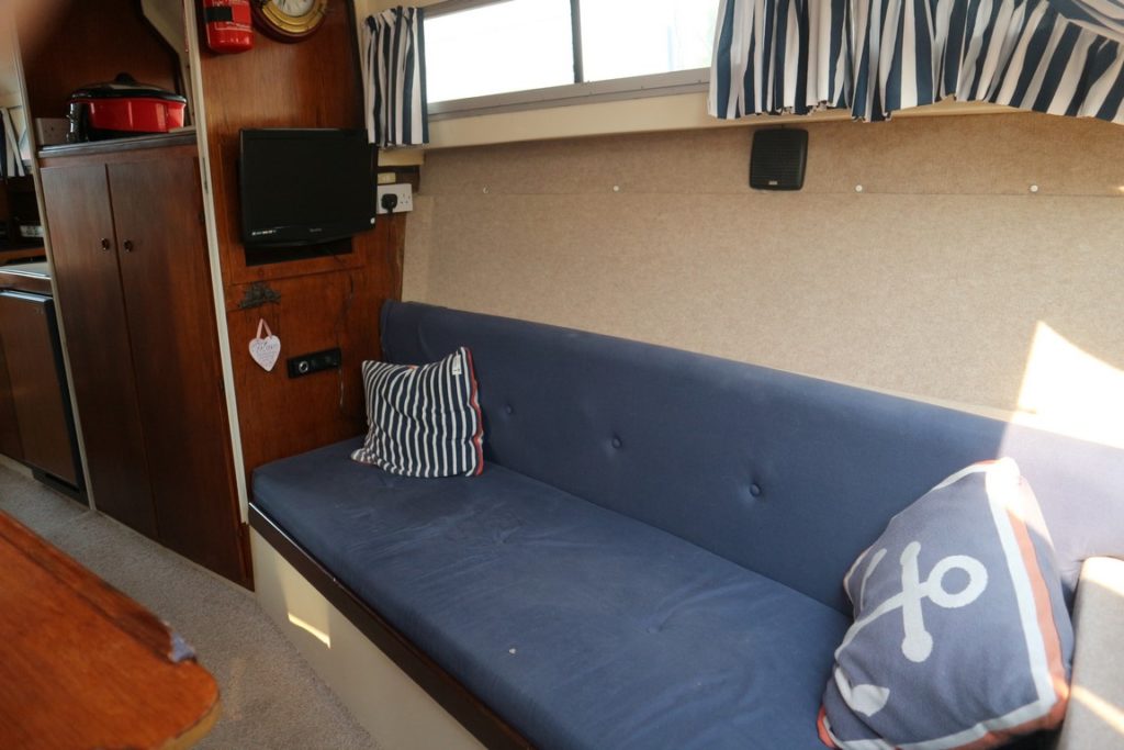 FAIRLINE PHANTOM 32 – 1979, 2 x Volvo AQ120 120HP petrol engines, surprisingly spacious accommodation for 5 with 1 toilet and shower facility. BSSC until March 2019 . Specification to include, holding tank, shore power with battery charger and warm air heating fitted 2015, re-upholstered 2015. Antifouled 2018. Well maintained example.