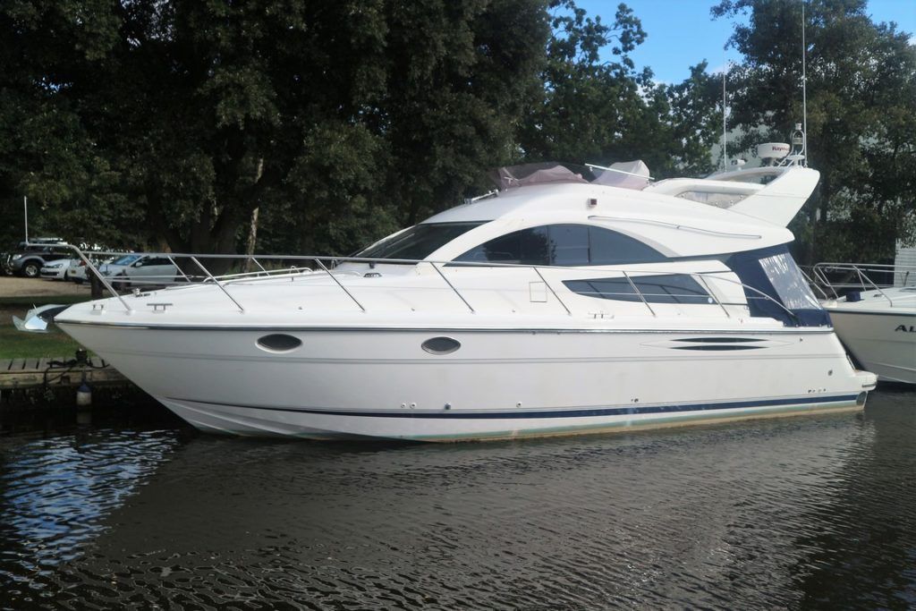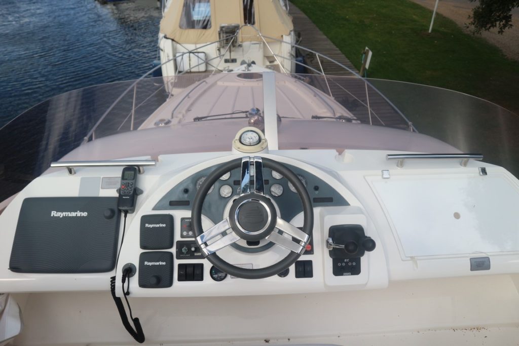 FAIRLINE PHANTOM 40 – Built 2004 commissioned 2005 – Powered by twin Volvo TAMD63 diesels. 6 berth accommodation with 2 toilets and 2 showers. Specification to include; Bow thruster, holding tank, electric windlass and full updated Raymarine navigation equipment to include the hybrid touch plotters. Teak laid cockpit and bathing platform. A very well kept-example, in great order throughout with under 700 engine hours,