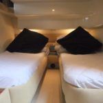 FAIRLINE PHANTOM 43 – 2000, 2 x Volvo TAMD74 480Hp diesel engines, 6 berths in 2 cabins, 2 x electric toilets & showers, Boat Safety Certificate. High spec: washing machine, shore power, battery charger, hot air heating system, generator, inverter, bow thruster, new teak bathing platform May 2013. She offers style, space and accommodation with the benefit of new cockpit upholstery and canopies and new helm seats! Absolutely stunning!!
