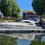Fairline Phantom 46 – 2002 – Powered by twin Volvo TAMD74 EDC 480hp diesel engines through shafts. Spacious 6 berth accommodation across 3 cabins with 2 x toilet/shower compartments plus Single crew cabin. A generous specification including Bow thruster, generator, reverse cycle aircon, shore power, battery charger, immersion, Webasto warm air heating, electric windlass, teak laid cockpit & bathing platform, a host of updated Raymarine navigation equipment, full engines service, polished and antifouled 2022. A very smart Phantom 46 benefitting from much recent updating, offered in ready to go condition.