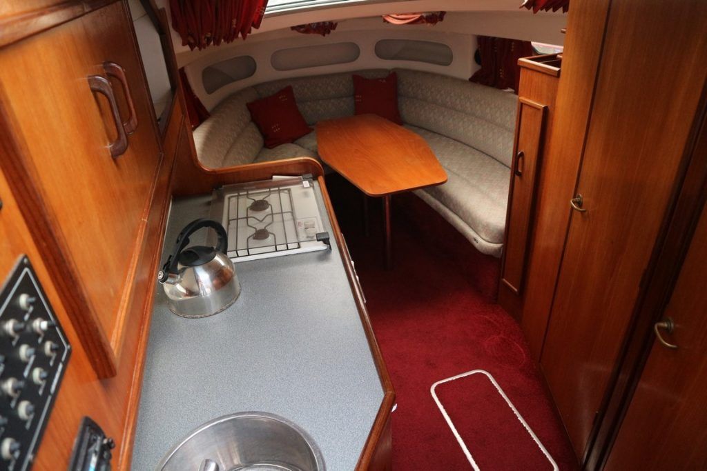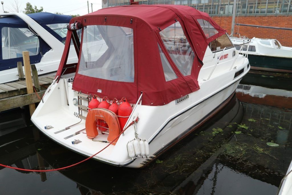 FAIRLINE TARGA 27 – 1991 – Powered by twin Volvo 431 205hp petrols. 4 berth accommodation with one toilet and one shower. BSC 02/22. Specification to include; Trim tabs, electric windlass, a range of navigation equipment and shore power supply with immersion, 240v sockets and battery charger. Folding radar arch for increased inland access. A nice original Targa 27, well kept and presented in good order! NYA STOCK – 3 month major mechanical fault warranty on the engines and gearboxes.