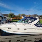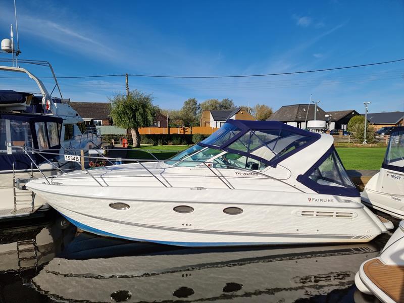 Fairline Targa 29 – 1998 – Powered by 2 x Volvo KAD32P 170hp diesel engines through stern drives. Intelligent 4 berth accommodation with 1 x toilet/shower compartment. Specification to include; shore power, immersion heater, Eberspacher heating, electric windlass, battery charger, bow thruster, and a range of navigation equipment including a Garmin GPS Map 4008. Recent work carried out includes; a full engine service, outdrive service, new Bailey & Stone canopy, antifouled and wintered ashore 2022. A beautiful-looking craft inside and out – a real credit to its’ meticulous owner.