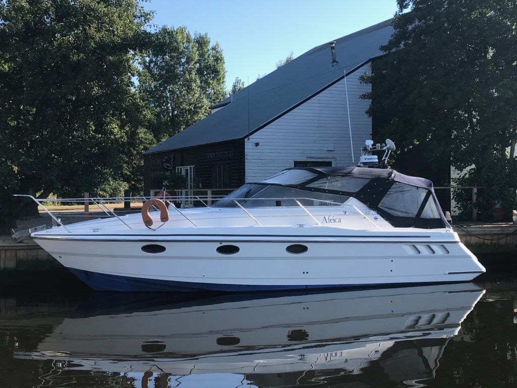 FAIRLINE TARGA 30/33 – 1992 – Twin Volvo AD41DP 200HP Diesel Engines serviced 2020. 4 comfortable berths with 1 sea toilet and 1 shower. Eberspacher Warm air heating system, Shore power, Trim tabs, Immersion heater, Battery charger, Raymarine auto pilot, radar, RL70C Chart plotter, Striking sports cruiser in excellent condition throughout. Recent survey available