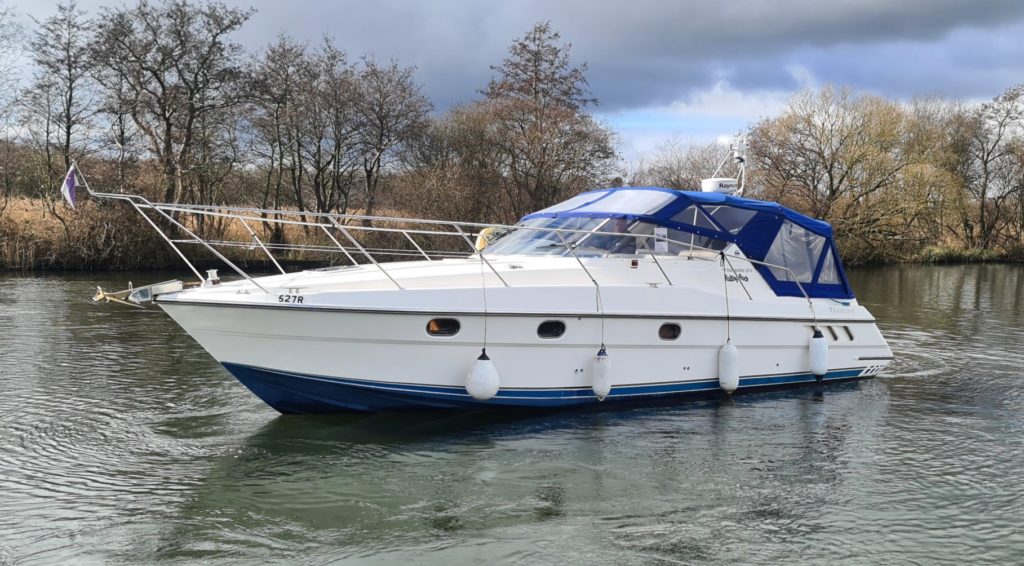 FAIRLINE TARGA 34 – 1993, 2 x Volvo KAD42 230Hp Diesels, spacious accommodation providing 6 berths in 3 cabins, Webasto heating, bow thruster, chart plotter, Raymarine E Series, VHF, heating fitted, Boat safety Certificate until July 2026, An impressive craft at speed and during low speed manoeuvres – the Targa looks great and performs superbly! Certain to put a smile on your face.
