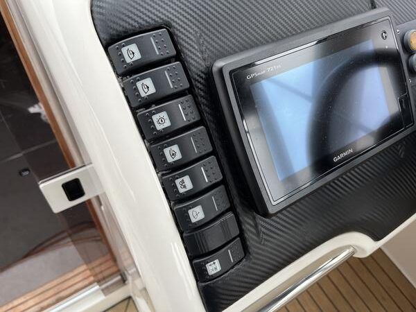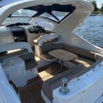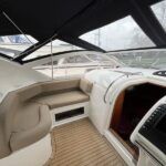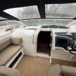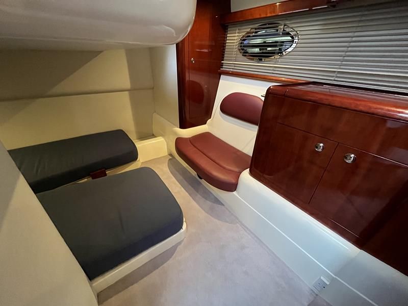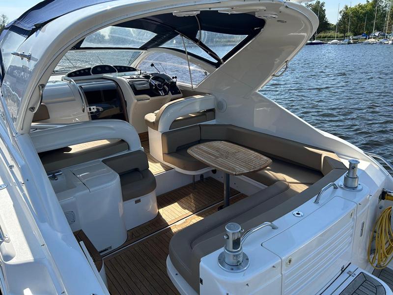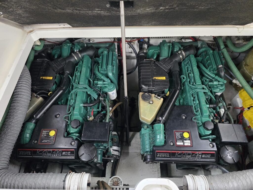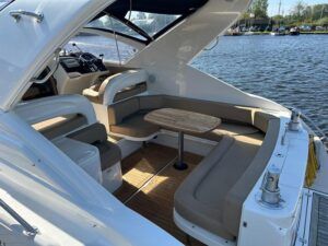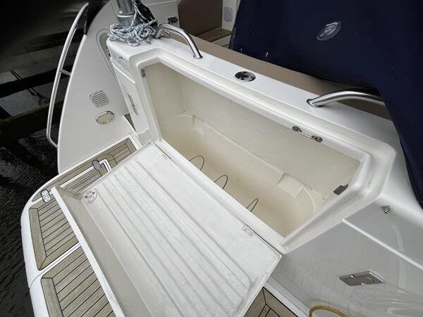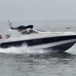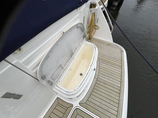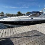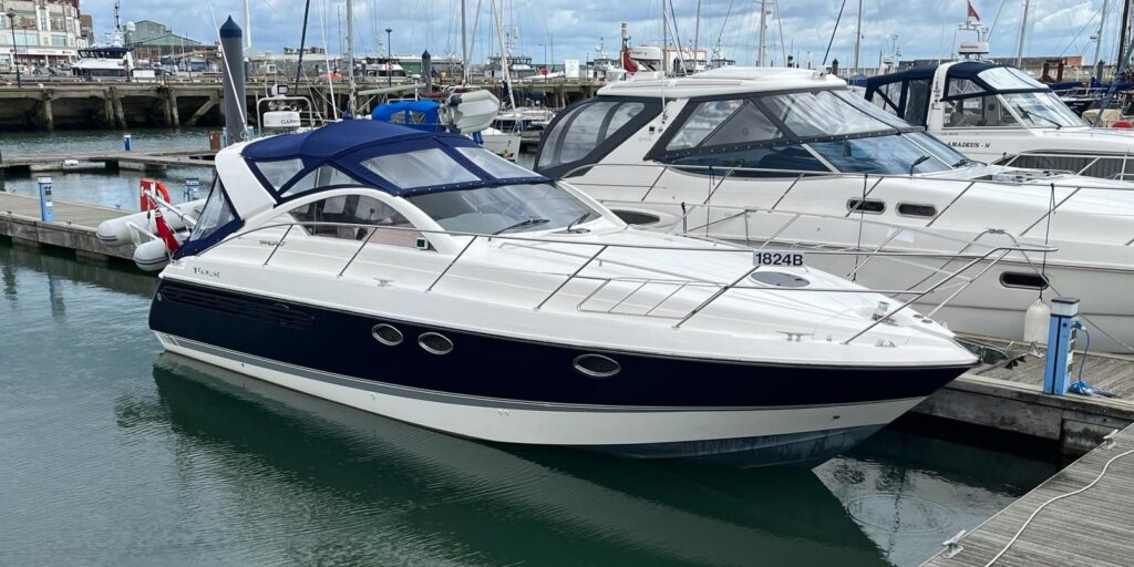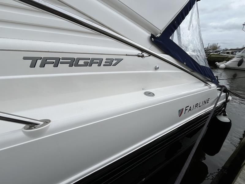 Fairline Targa 37 – 1997/98 – 2 x Volvo Penta KAD44P/EDC/DP 260HP diesel engines through stern drives. 4 berths across two cabins with 1 x toilet and shower compartments. Specification includes; bow thruster, warm air heating, battery charger, shore power, immersion, Garmin GPS map & radar, trim tabs, cockpit wet bar, electric windlass, teak laid cockpit, besenzoni davits and more. A striking sports cruiser, beautifully presented and benefitting from a large sociable cockpit, ideal for entertaining.