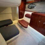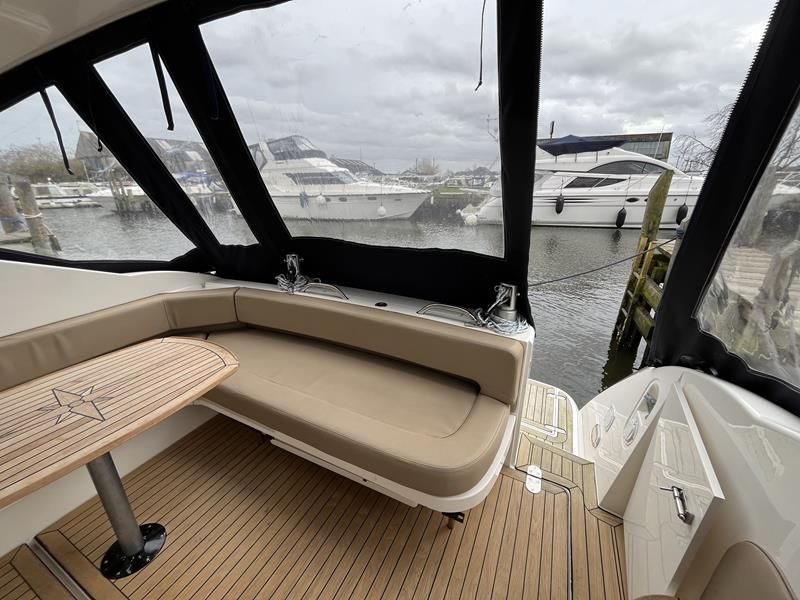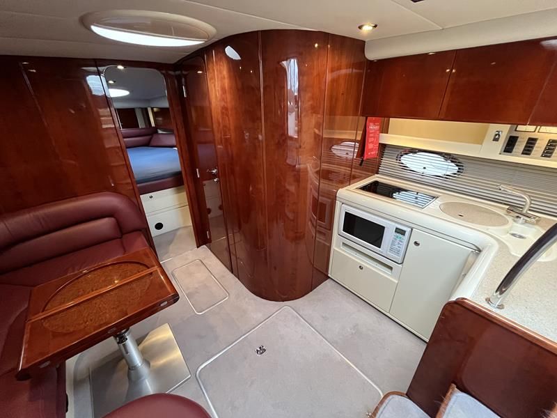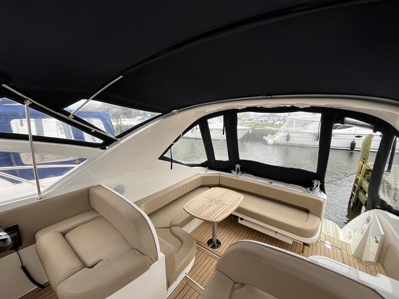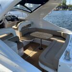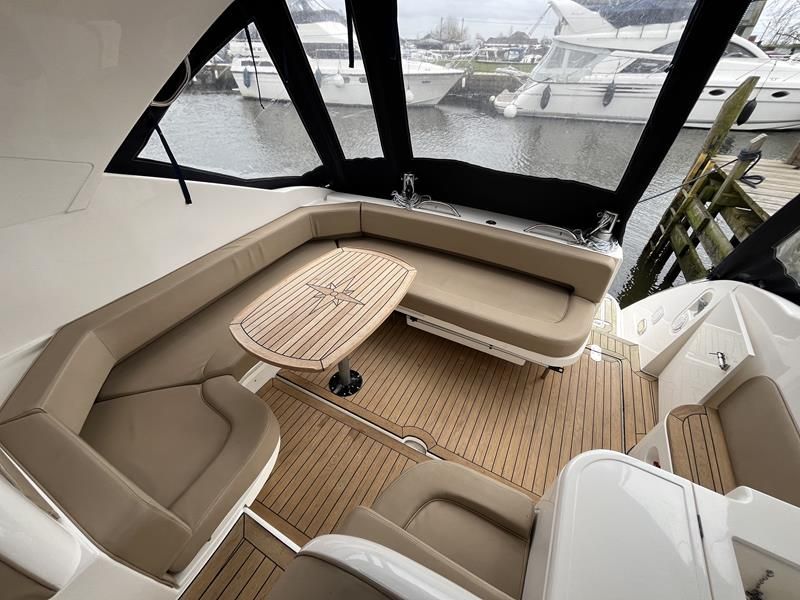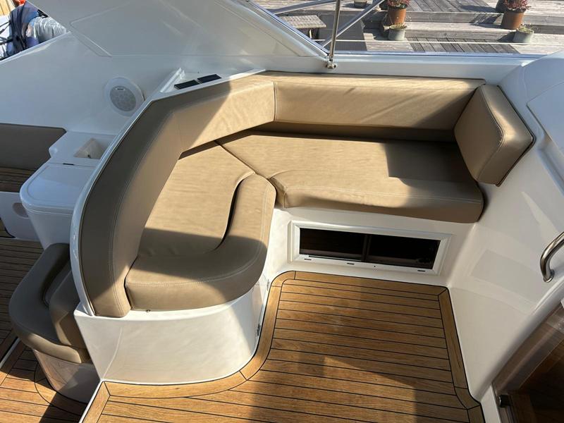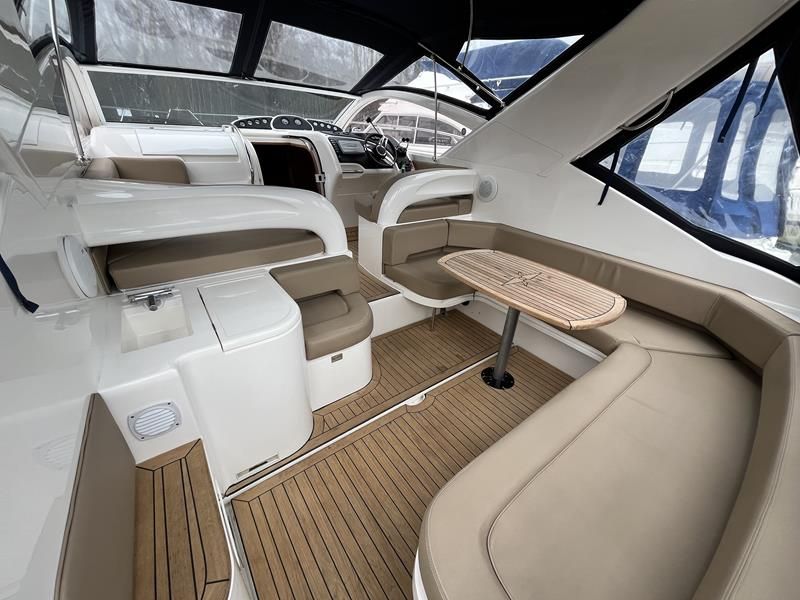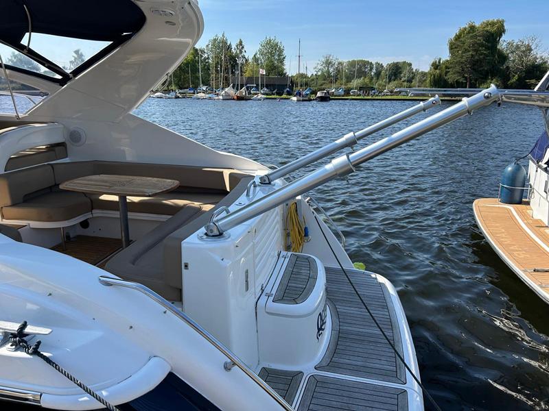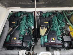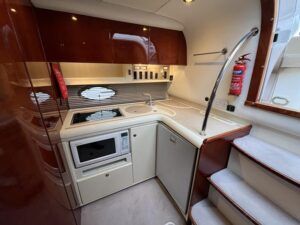 Fairline Targa 37 – 1997/98 – 2 x Volvo Penta KAD44P/EDC/DP 260HP diesel engines through stern drives. 4 berths across two cabins with 1 x toilet and shower compartments. Specification includes; bow thruster, warm air heating, battery charger, shore power, immersion, Garmin GPS map & radar, trim tabs, cockpit wet bar, electric windlass, teak laid cockpit, besenzoni davits and more. A striking sports cruiser, beautifully presented and benefitting from a large sociable cockpit, ideal for entertaining.