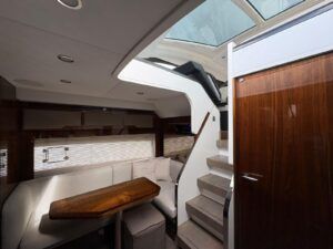Fairline Targa 45 GT – 2022 – 2x Volvo D6- IPS650 480hp diesel engines, volvo dynamic positioning. 15″ garmin plotter, (new 2023) AIS receiver, Hi/Lo bathing platform, webasto warm air heating with screen demister, saloon fridge, high gloss walnut joinery, two cabin layout, with lower dinette, tender garage, maintained by a very experienced owner, main dealer engine service 2025 and presented in exceptional order throughout.