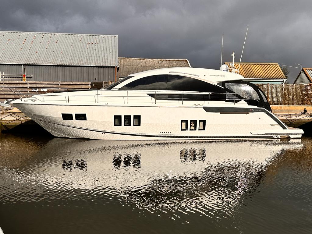 FAIRLINE TARGA 50 – Built in 2012, Commissioned in 2013 – 2x Volvo D11-670hp EVC diesel engines. Maintained to a high standard boasting three modern cabins for up to six guests, all with en-suite facilities, and a roomy master cabin featuring a centre king-size bed. Mouthwatering specification including; Garmin GPS, stern thrusters, Tropical Air conditioning with 17.5kw generator, inverter, holding tank, powered cockpit sunshade, autopilot, tender launch system, letterbox passerelle, Bose sound system, bow thruster, washer/dryer, heating, battery charger, shore power and many extras! An exciting opportunity to acquire a high-performance and luxurious yacht that’s guaranteed to take your boating experience to the next level!