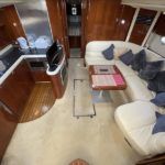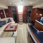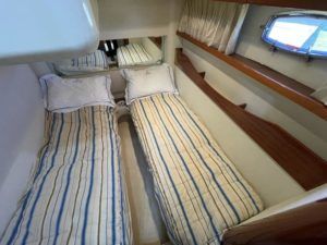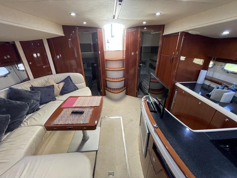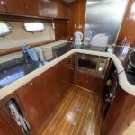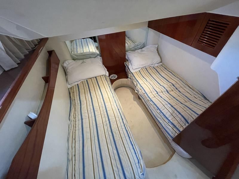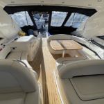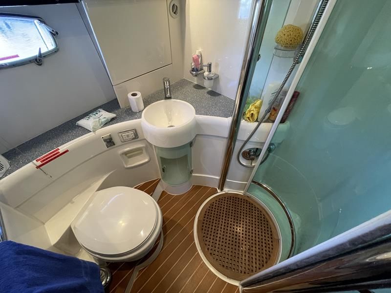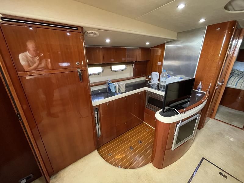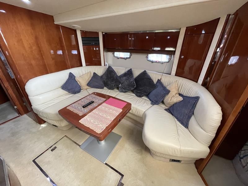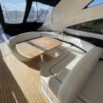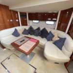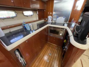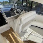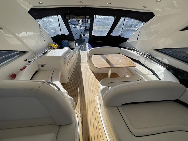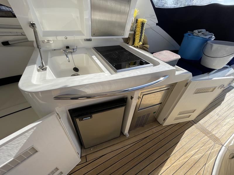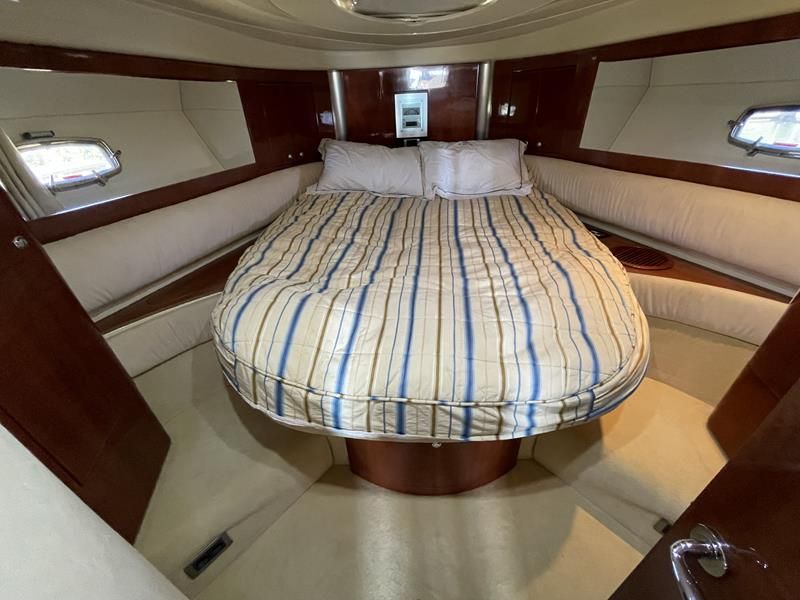FAIRLINE TARGA 52 GT – 2007 – Powered by twin Volvo D12-800 diesels through shafts – 6 berth accommodation across 3 cabins with two toilets and two showers – Specification to include; 13kva generator, reverse cycle air conditioning, bowthruster, Raymarine plotter and autopilot, electric windlass, 1600w inverter, trim tabs. Full teak laid cockpit, bathing platform and decks with striking blue hull. Electric sliding cockpit roof and cockpit wet bar with BBQ, refrigerator and ice maker! A cavernous sports cruising with a large specification to match. Masses of style and performance, a real head turner!