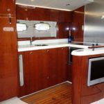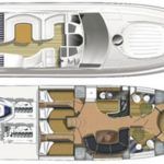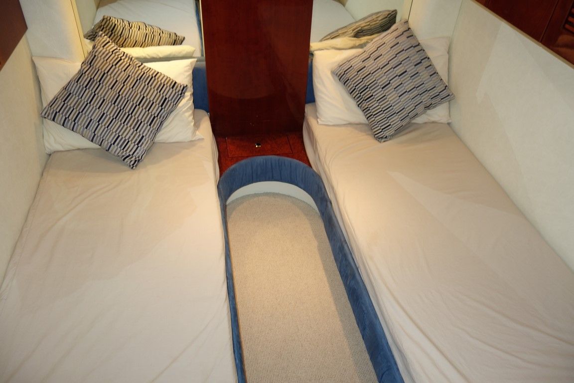 FAIRLINE TARGA 52 – 2005 -2 x Volvo D12 715hp – 3 cabins with forward double berth and ensuite, 2 twin berth cabins and separate toilet/ showers. Excellent spec which includes: generator, air con, leather, auto pilot, plotter, radar, sat TV, bow thruster, tender garage, wetbar with griddle, fridge and icemaker. Large open cockpit, superb 360 degree view from helm position which enhances the fantastic seakeeping qualities.