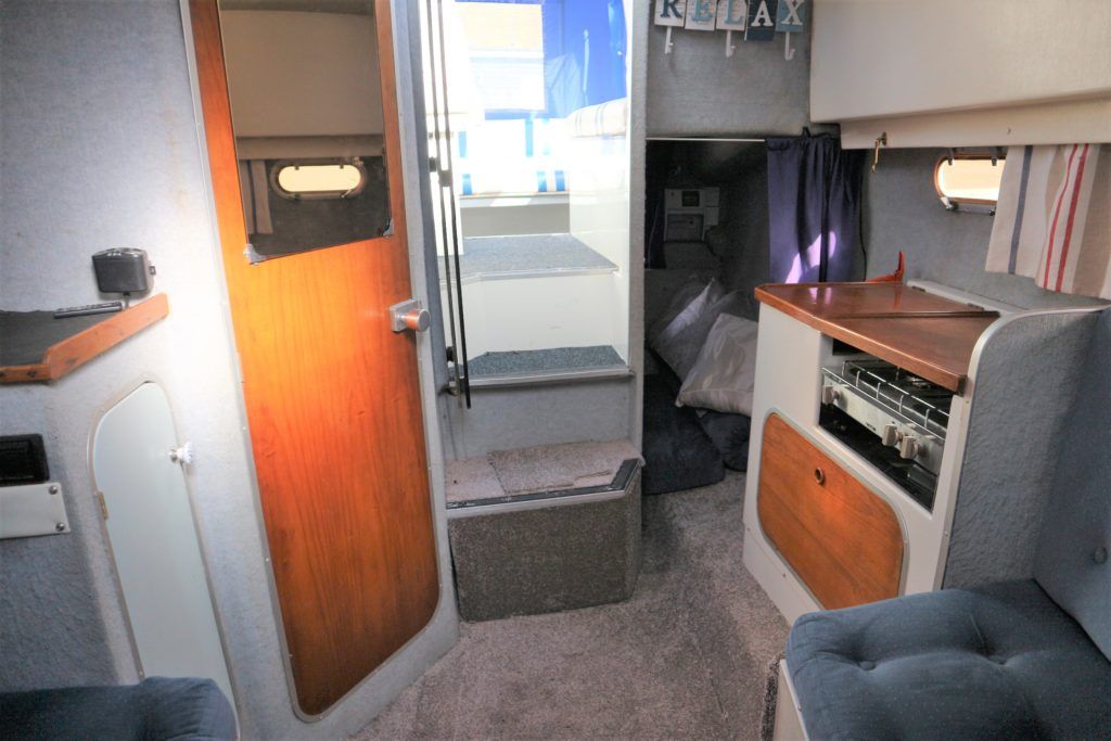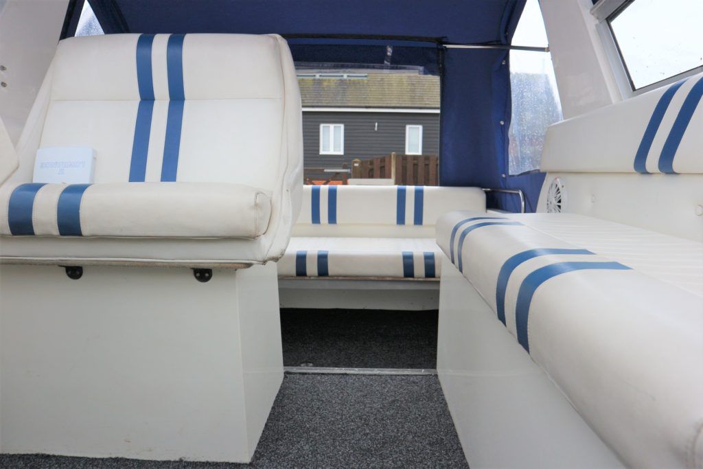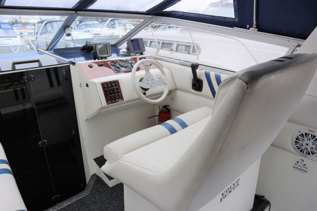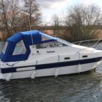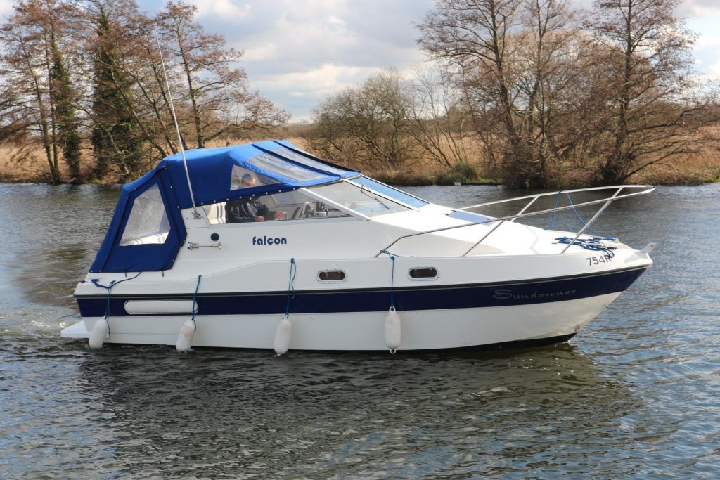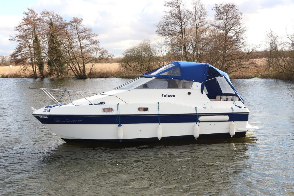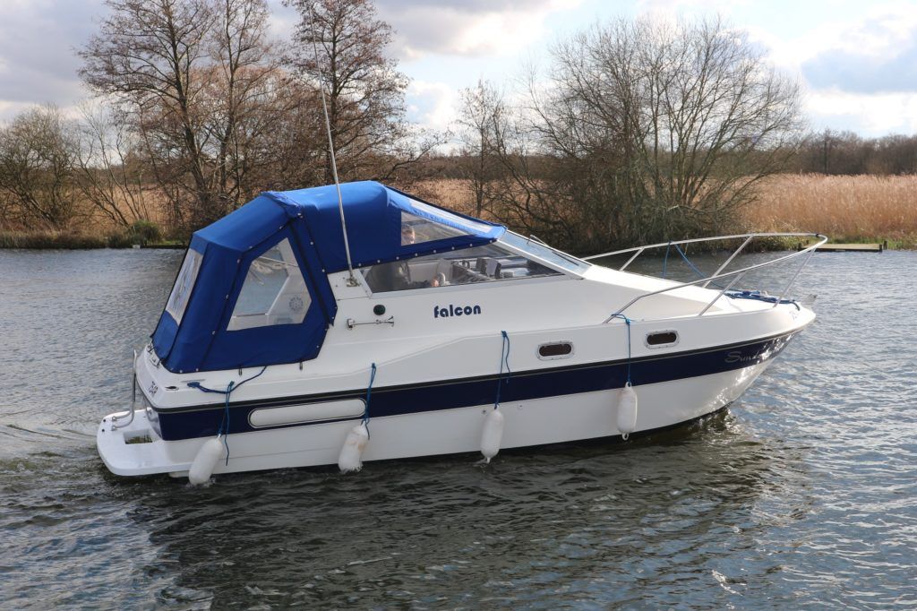 FALCON 22 – Circa 1988 – Powered by a single Volvo AQ225D (225hp) Petrol engine. 4 berth accommodation with 1 x toilet/shower compartment. Galley with two burner hob, grill & sink. Specification including shore power, battery charger, immersion, Garmin fish finder/depth log, Lowrance chart plotter, BSC 05/20, Outdrive serviced & antifouled in 02/20. A popular Norfolk built sports boat for inland and coastal cruising, offering good accommodation for her size.