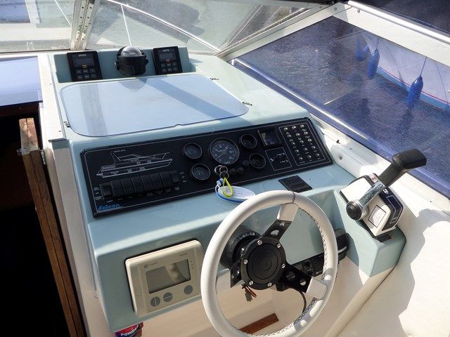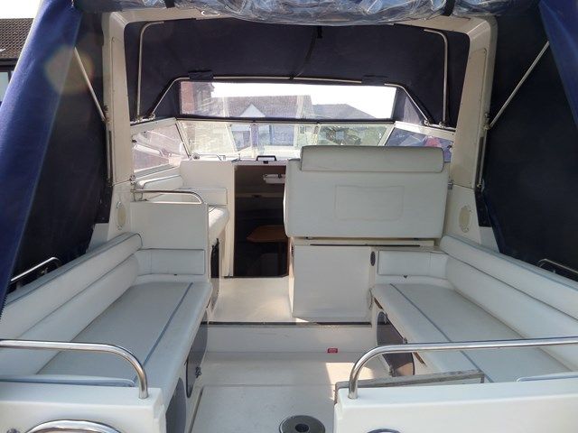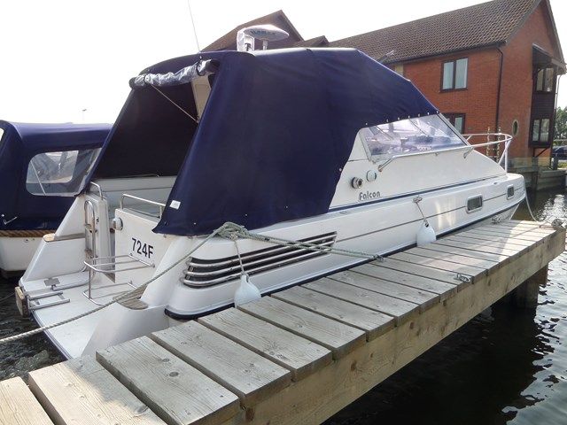 FALCON 23 – Circa 1989, 1 x Volvo AQ205A 205Hp petrol engine, 4 berths in 1 cabin plus saloon, 1 x toilet & shower. Shore power, holding tank, battery charger, 2 ring gas hob & grill, fridge, calorifier, diesel hot air heating system, folding windscreens & radar arch! A good example of these popular boats, well worth a look!