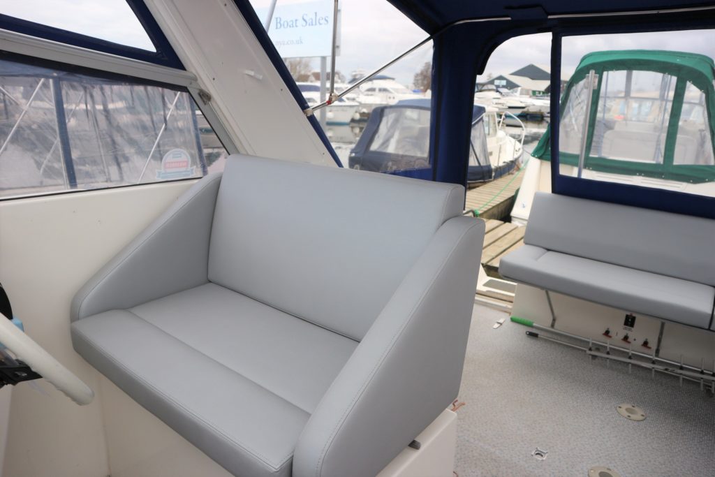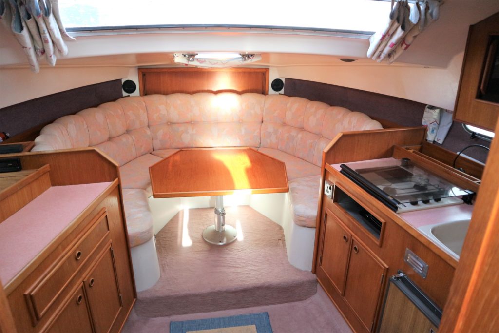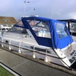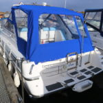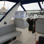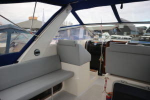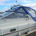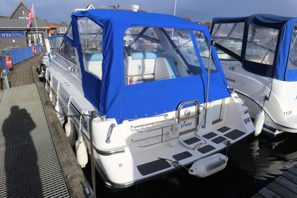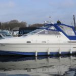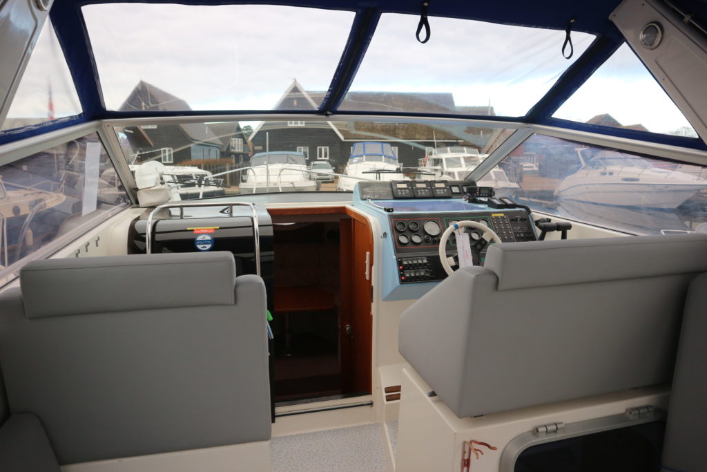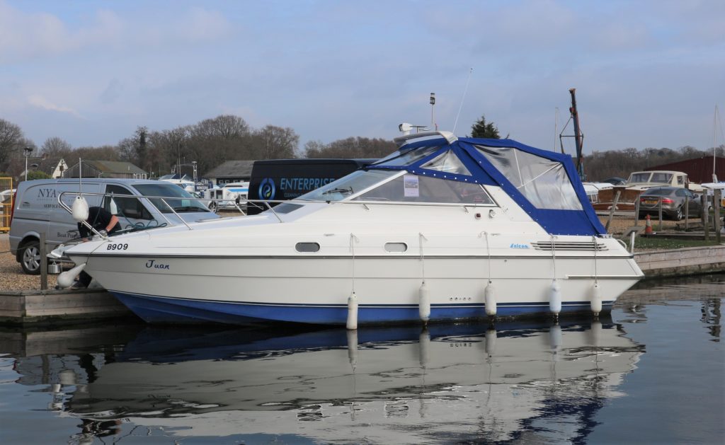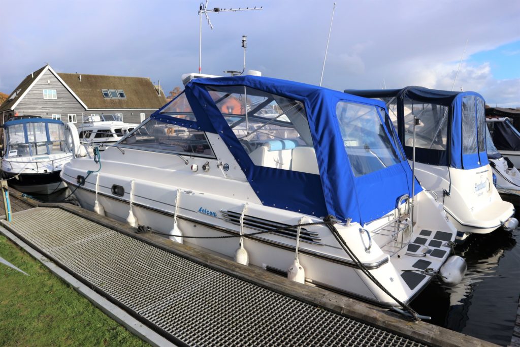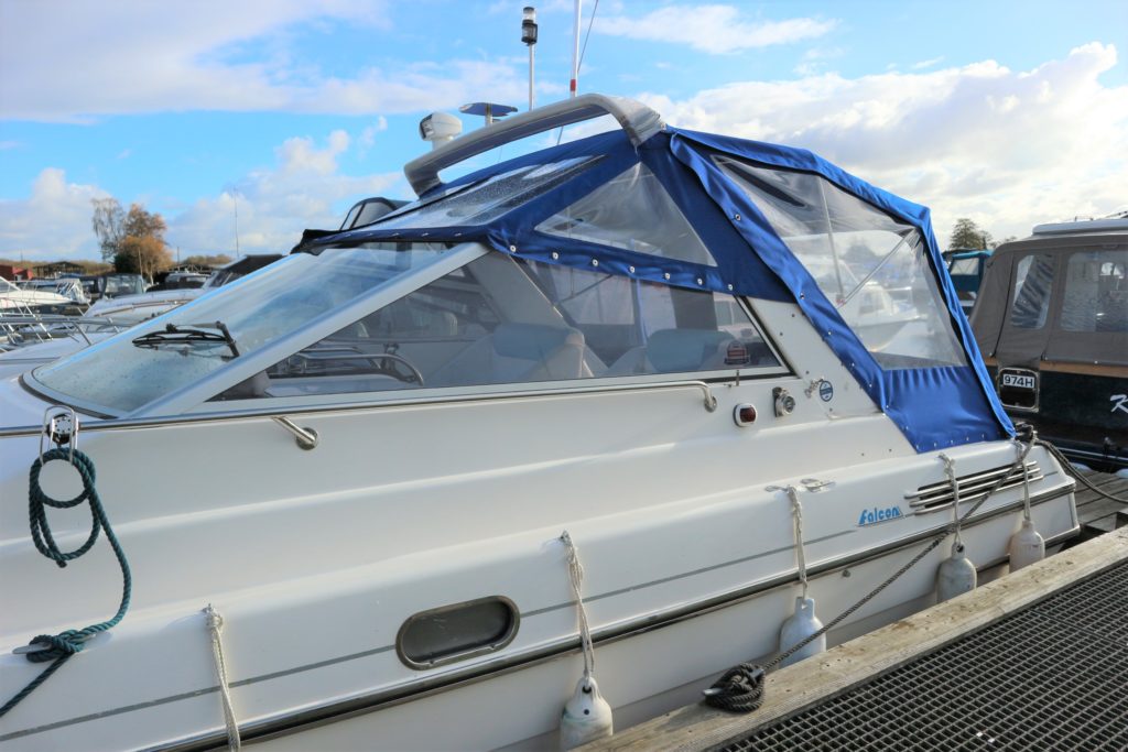 FALCON 27 – 1990 – 2 x Volvo 250/290DP (146)hp petrol engines. 4 berth accommodation with 1 x toilet/shower compartment. New canopy 2018, new cockpit upholstery 2019, hinged radar arch, shore power, immersion heater, electric anchor winch, battery charger, speed and depth logs, BSC 11/21. A sleek sports cruiser with comfortable accommodation and generous cockpit seating, offering greater inland water access. NYA Stock – 3 month engine & gearbox warranty.