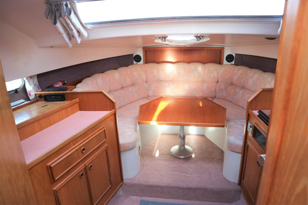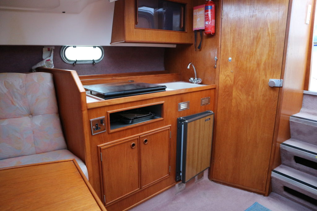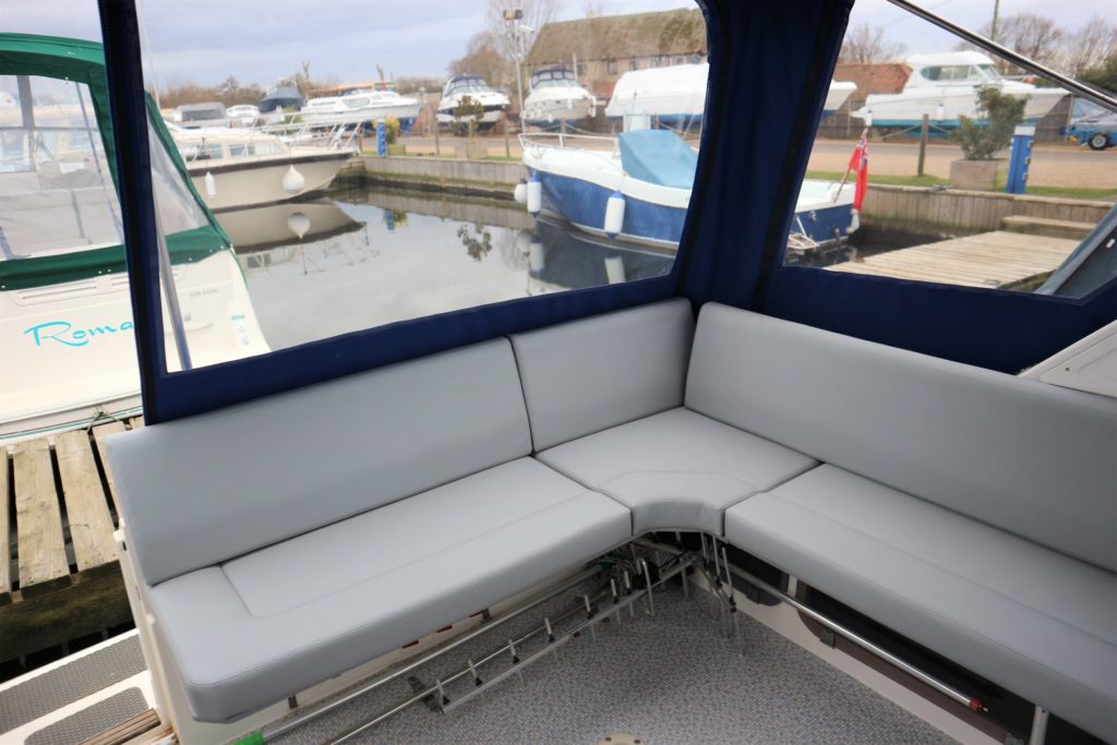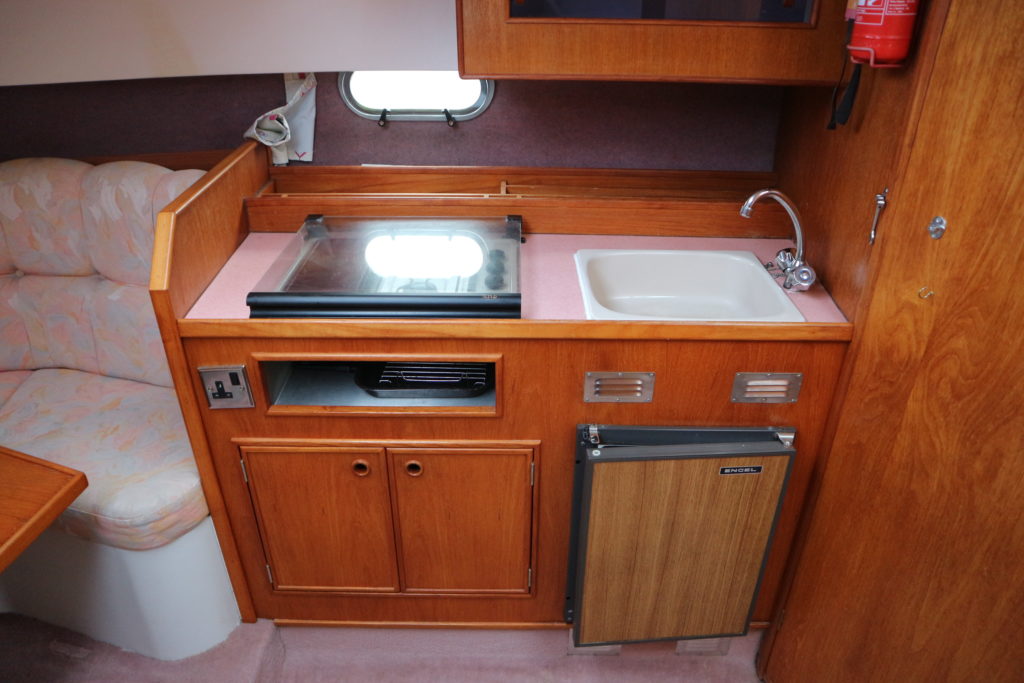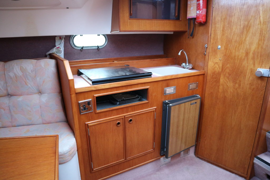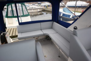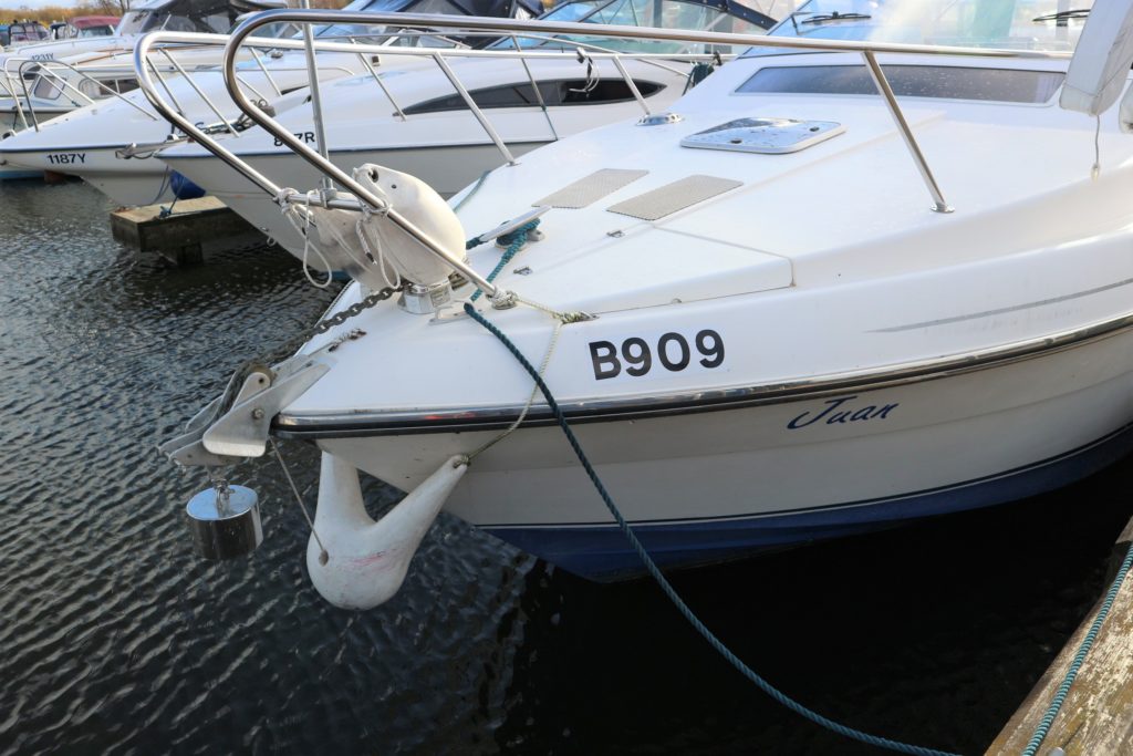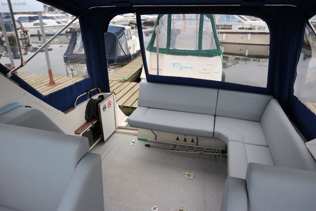 FALCON 27 – 1990 – 2 x Volvo 250/290DP (146)hp petrol engines. 4 berth accommodation with 1 x toilet/shower compartment. New canopy 2018, new cockpit upholstery 2019, hinged radar arch, shore power, immersion heater, electric anchor winch, battery charger, speed and depth logs, BSC 11/21. A sleek sports cruiser with comfortable accommodation and generous cockpit seating, offering greater inland water access. NYA Stock – 3 month engine & gearbox warranty.