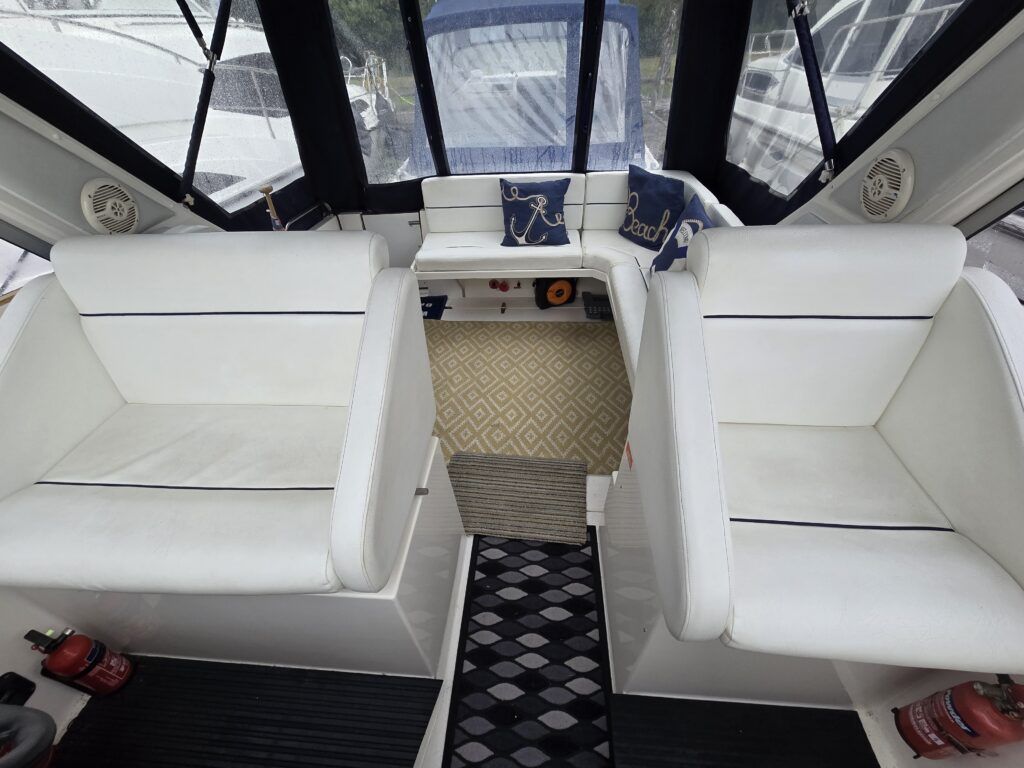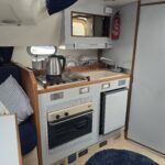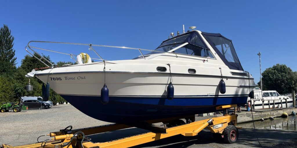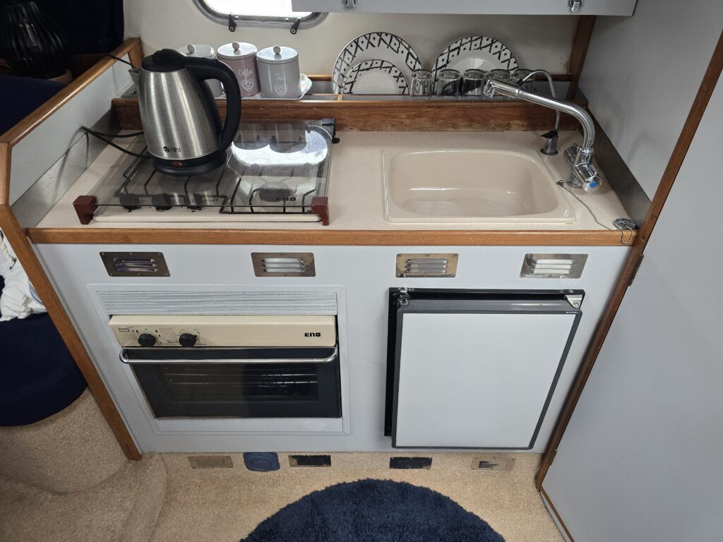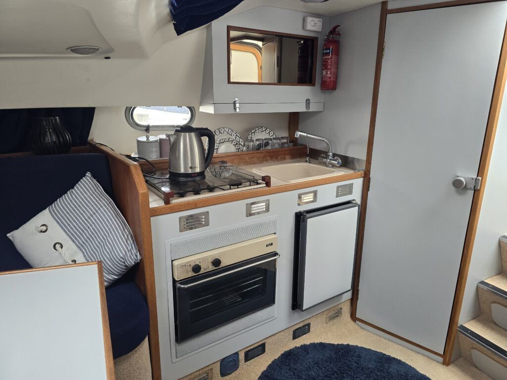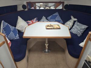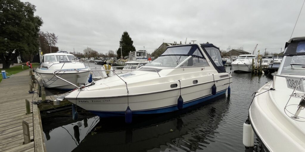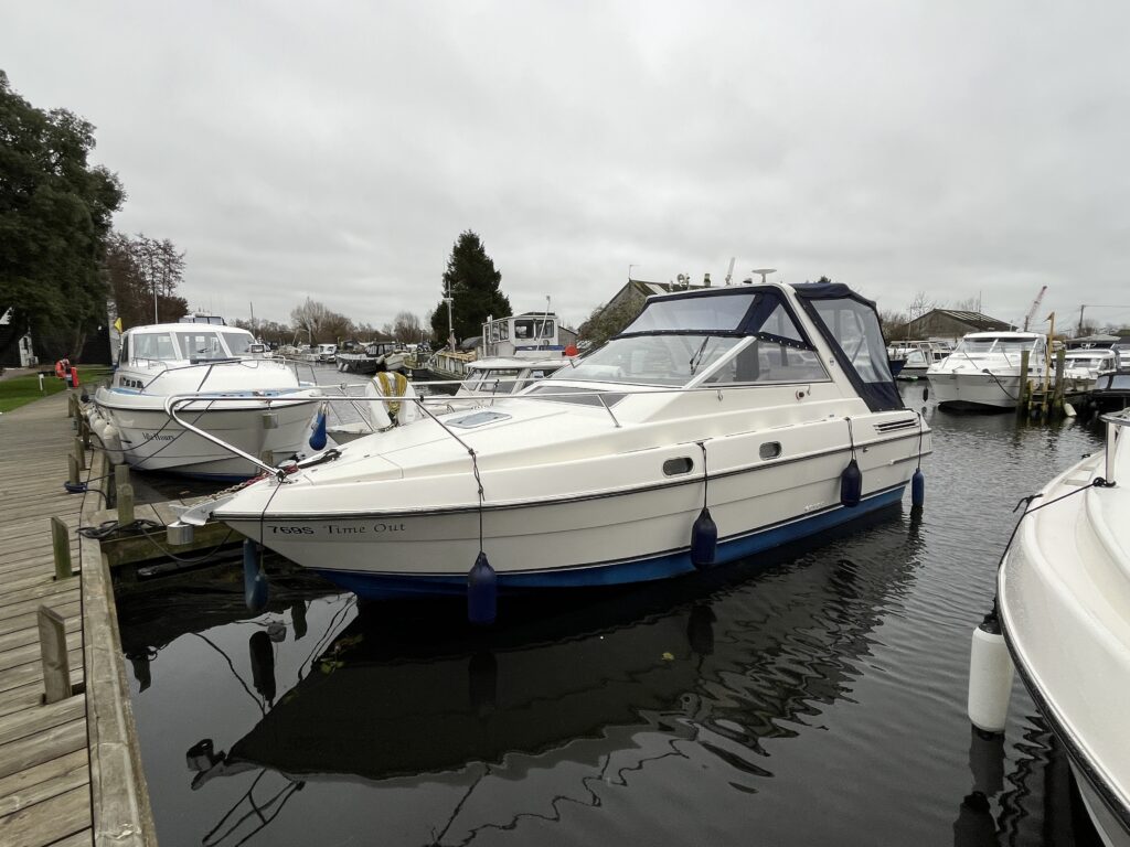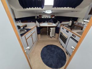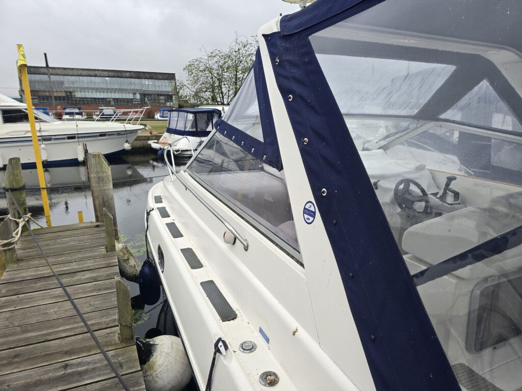 Falcon 27 – 1992 – Single Ford diesel engine through a sterndrive. 4 berth accommodation with single heads/shower. Specification to include: bow thruster, electric windlass, shore power, battery charger, calorifier/immersion, holding tank, Eberspacher D2 warm air heating (2023), New canopy 2023. Engine serviced 11/25. A well presented boat that has benefited from significant investment over the years. Recently anti-fouled and serviced 11/2025. BSC 06/2027