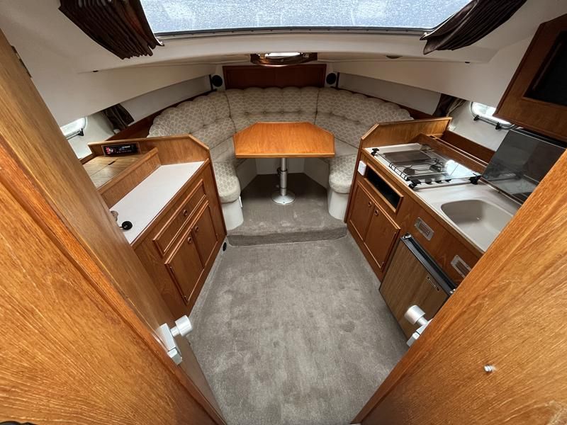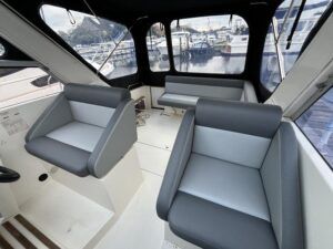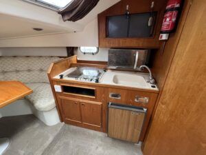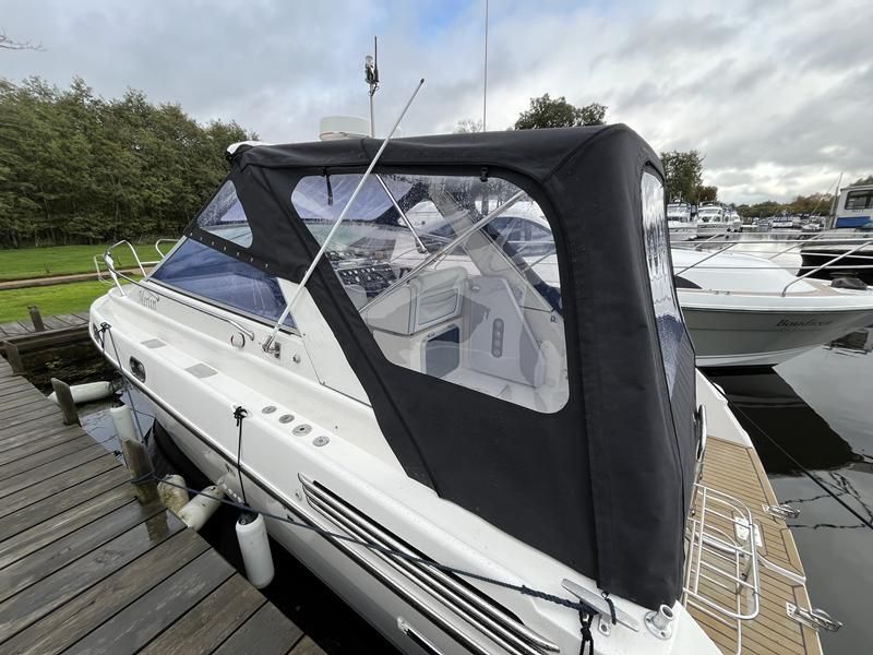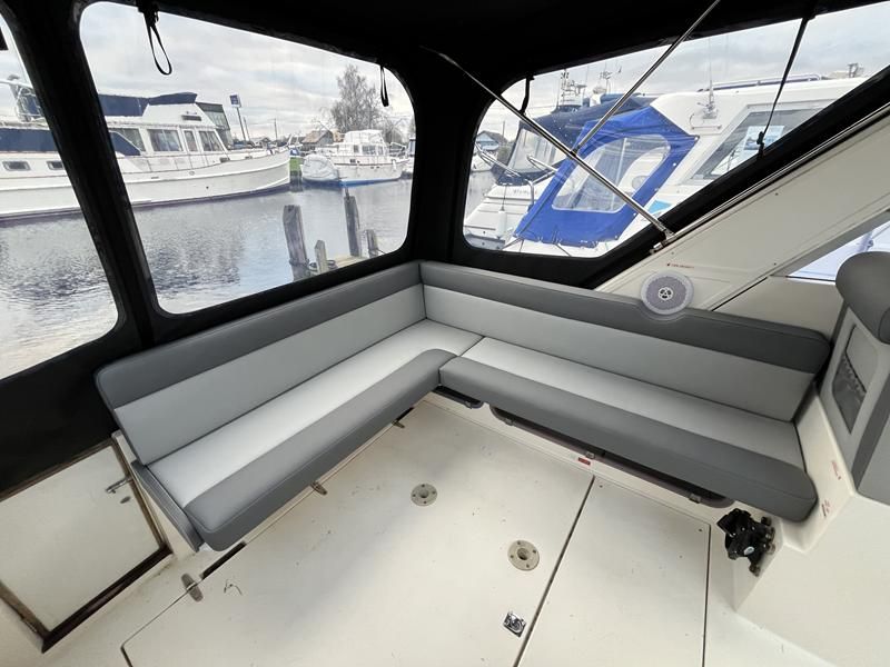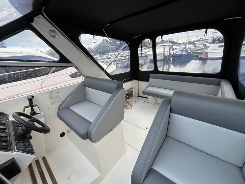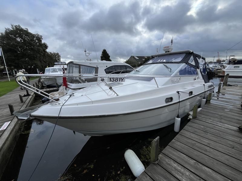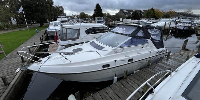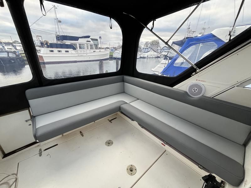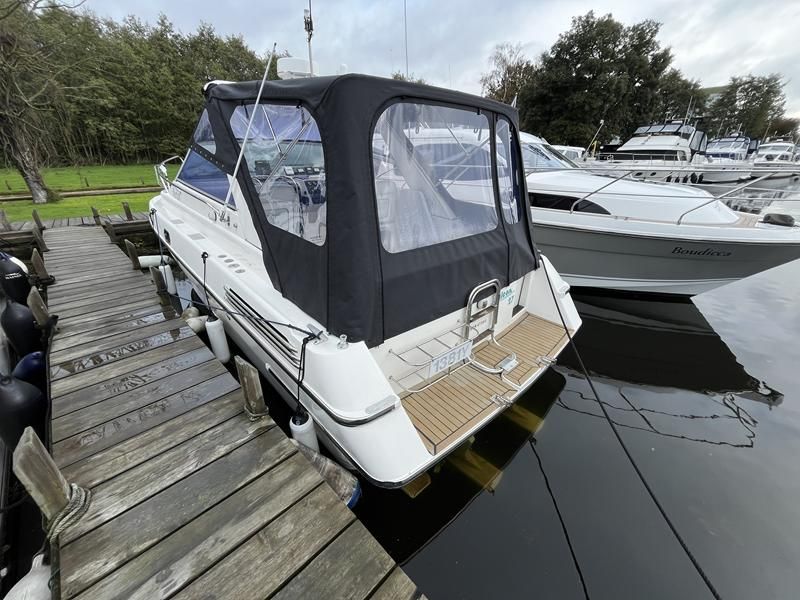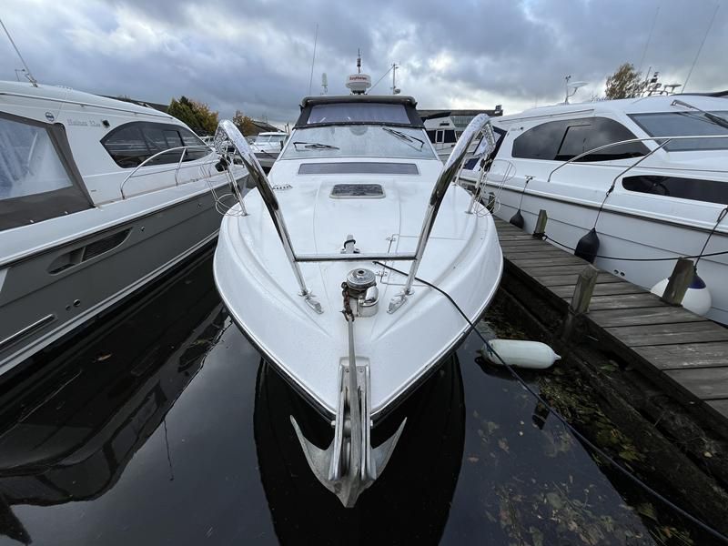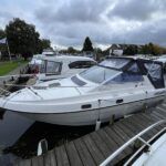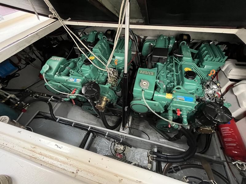 Falcon 27 – 1991 – Powered by 2 x Volvo AD31/DP 130hp diesel engines. 4 berth accommodation with 1 x toilet/shower compartment. Specification including bow thruster, electric windlass, shore power, battery charger, immersion, warm air heating, speed & depth log, chart plotter & VHF, folding radar arch, new canopy & Cockpit upholstery 11/2025, compound, polish & antifouled 11/2025. NYA Stock – Sold with 3 month engine & gearbox warranty.
