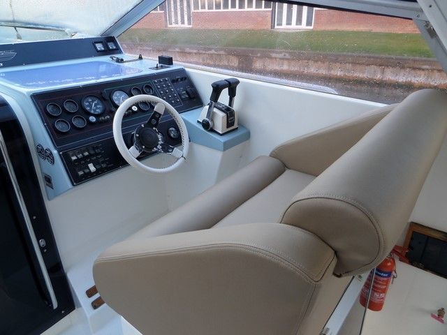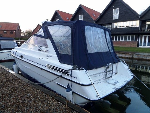 FALCON 27 – 1990 – Twin 146hp Volvo AQ151 petrol engines. 4 berths in mid cabin and saloon. Recent major outdrive overhaul and engine service, polished & compound, antifouled, new carpets and cockpit upholstery. Great cockpit, great accommodation! This is an extremely smart Falcon 27, must be seen.