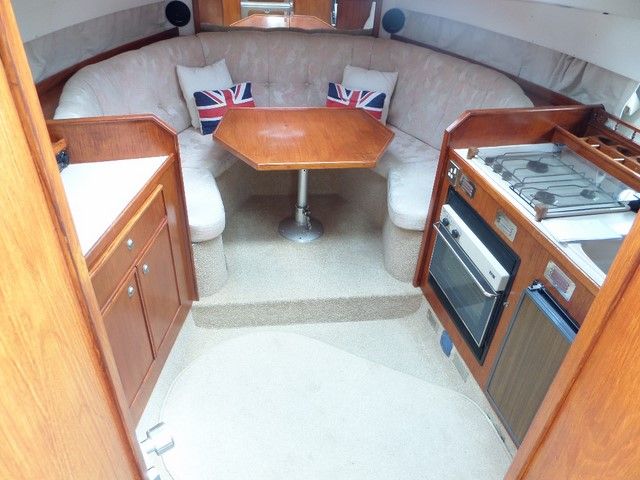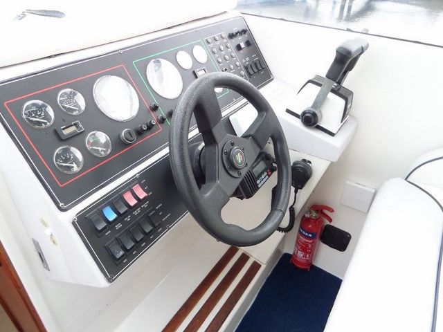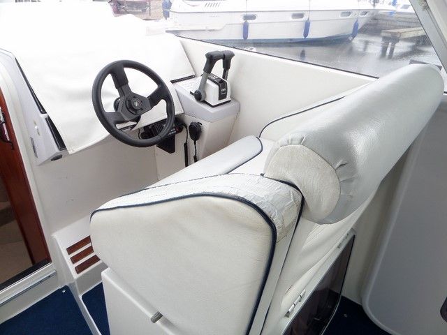 FALCON 27 – 1992, twin Volvo Penta 145hp petrol engines. 4 berths, toilet with holding tank, shower, cooker, fridge, hot water, shore power, electric windlass, VHF, autopilot, GPS, plotter. Antifouled, and hull polished Feb 2014, engines serviced Dec 2014.