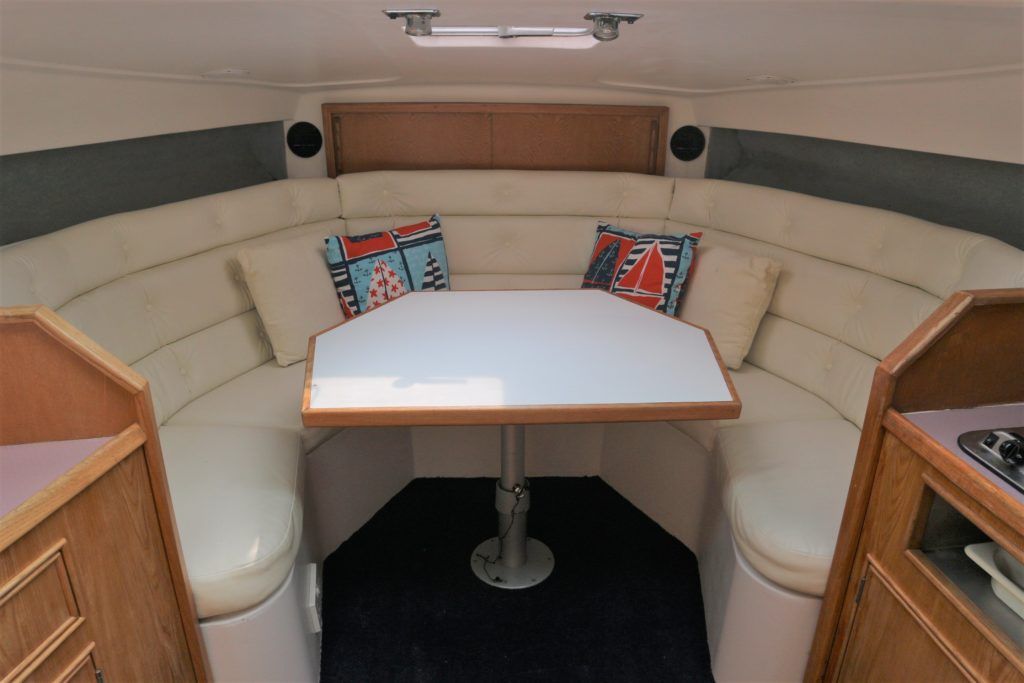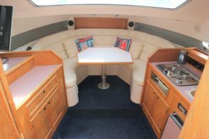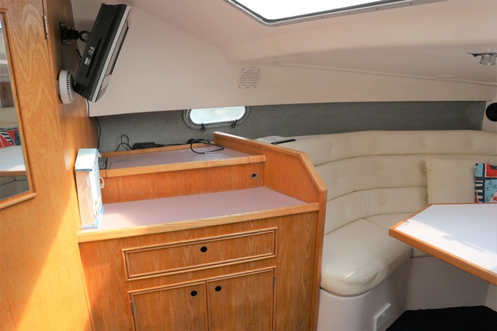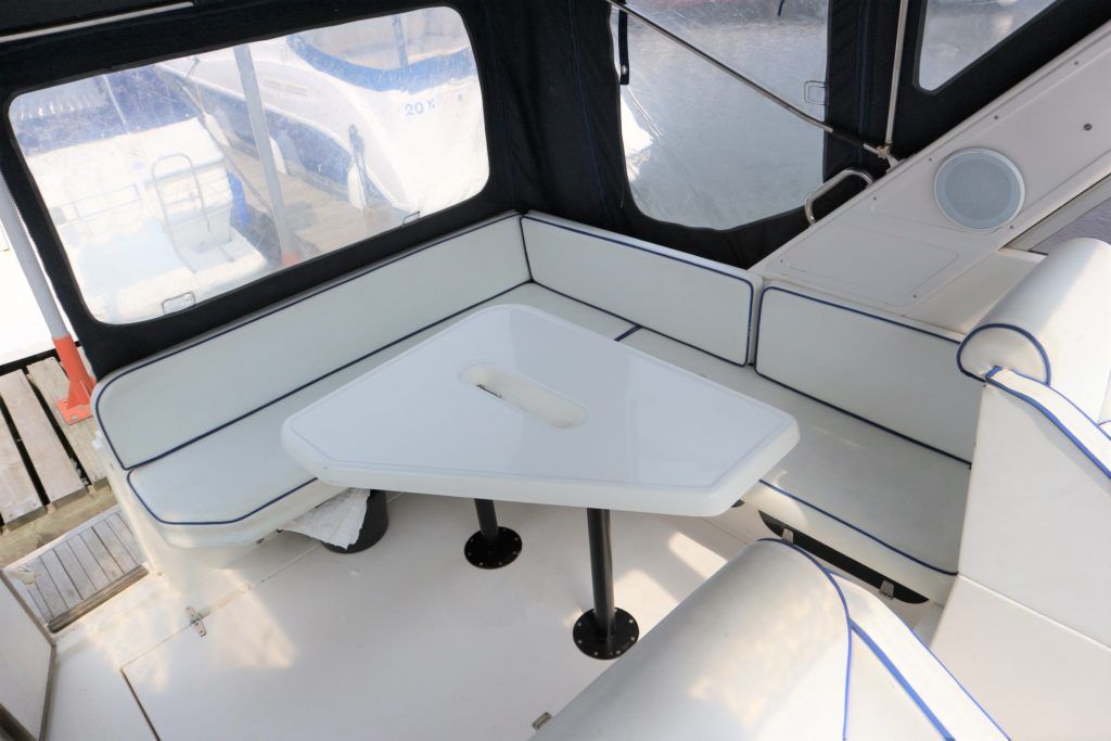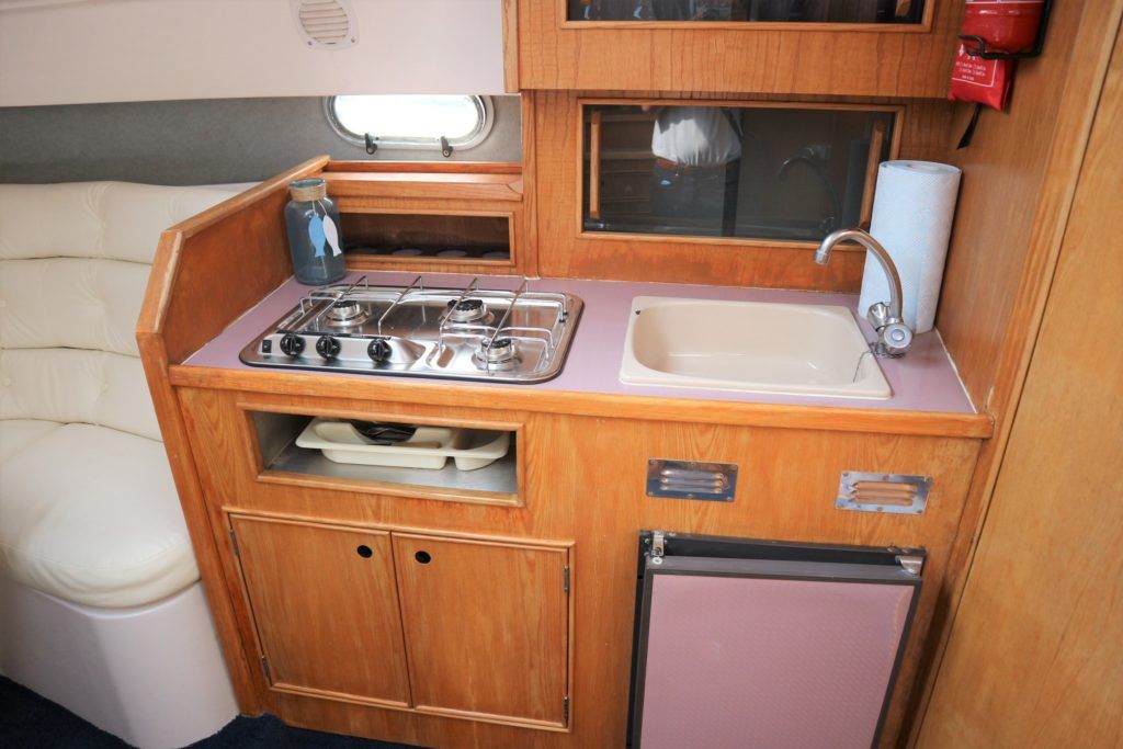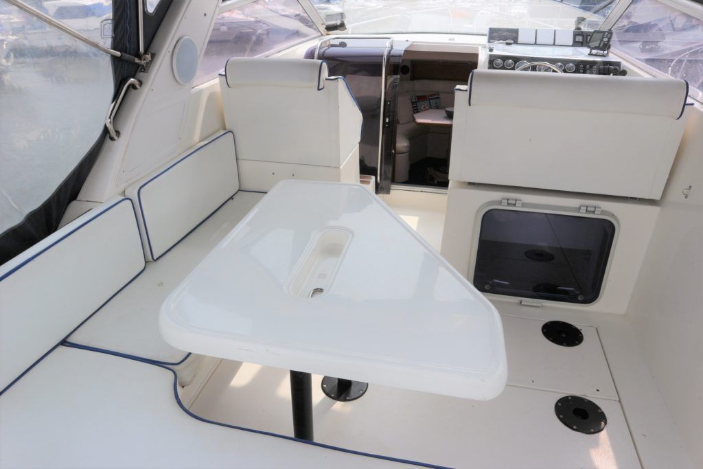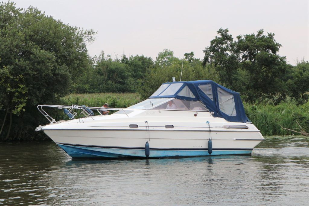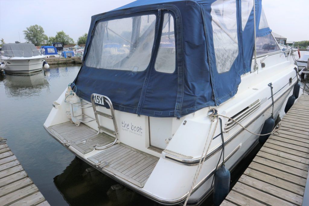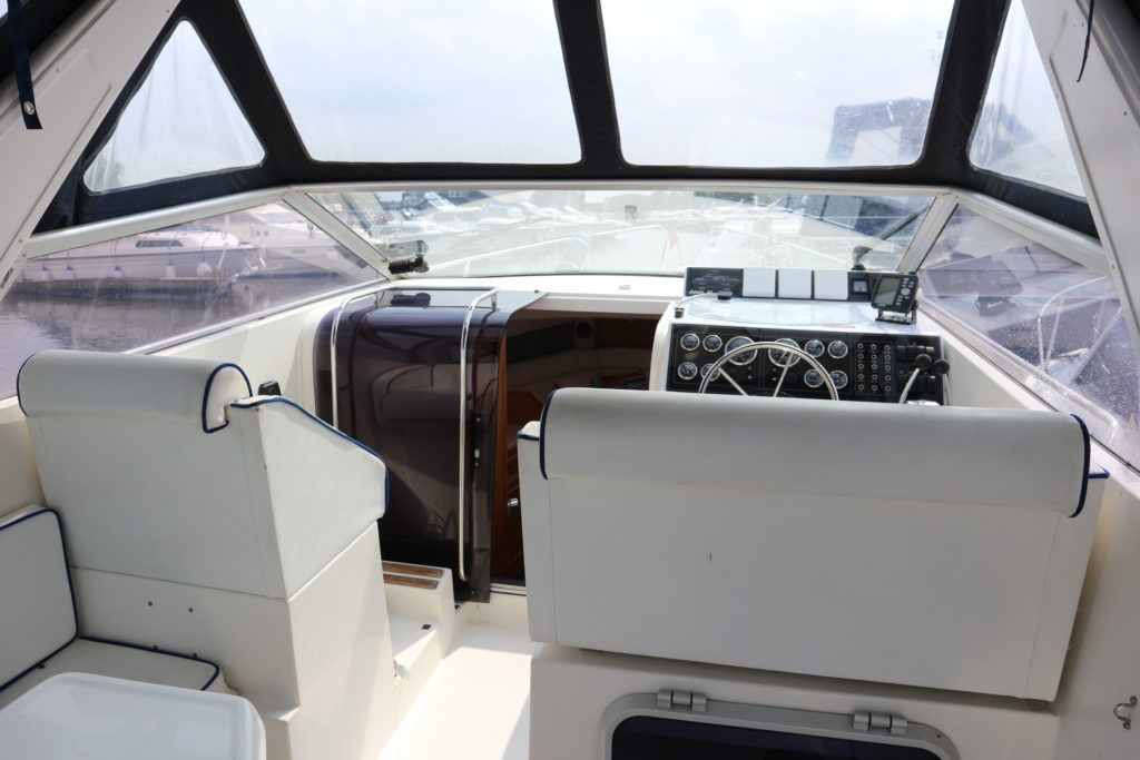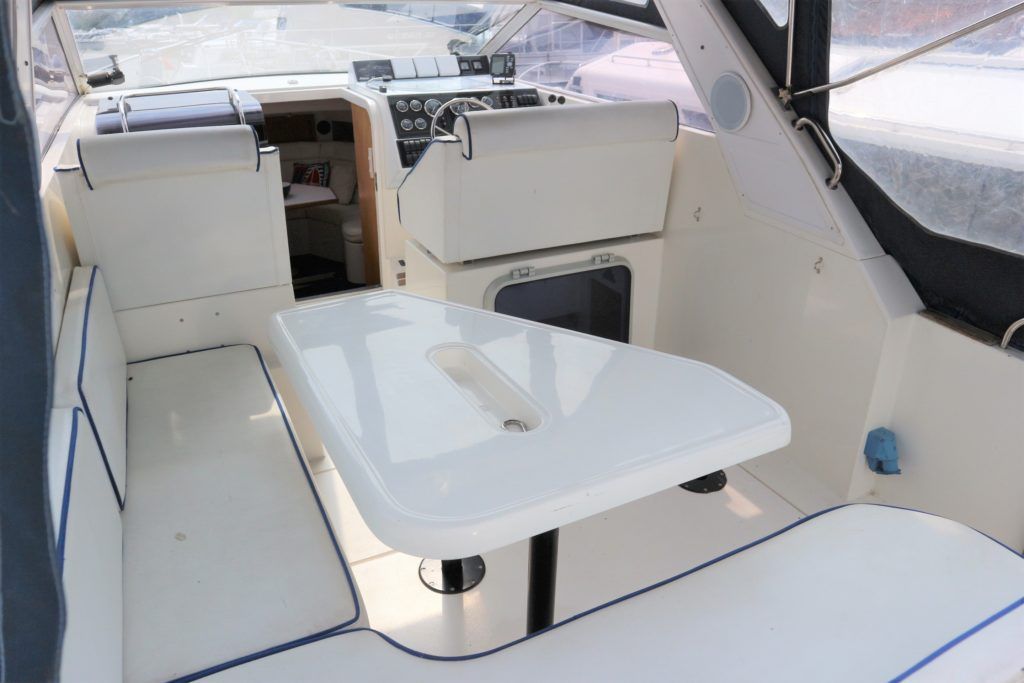 FALCON 27 – 1989 – 2 x Volvo AQ151C 146hp pertrol engines. 4 berth accommodation with 1 x toilet/shower compartment. Galley with 3 burner gas hob, fridge & sink. Specification including shore power, battery charger, immersion heater, anchor winch, speed & depth log, VHF, Garmin GPS, BSC10/20, engines serviced 08/19. A spacious sports cruiser with a sociable cockpit and generous accommodation.
