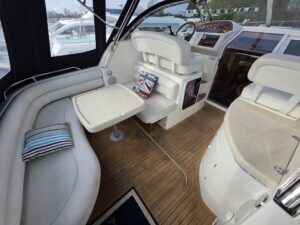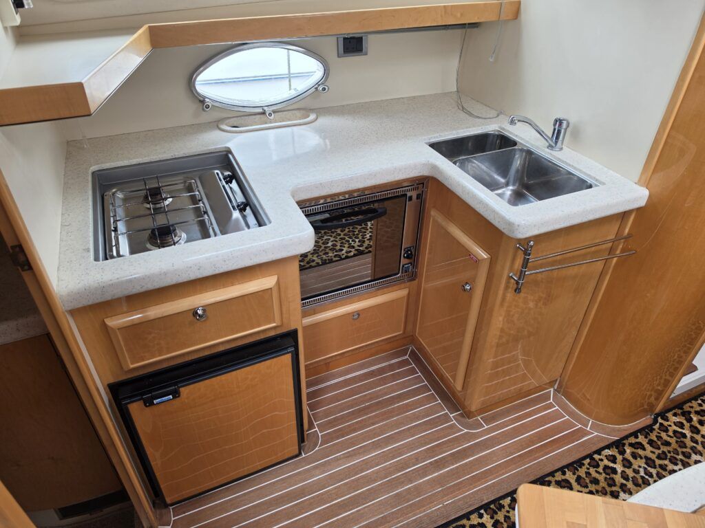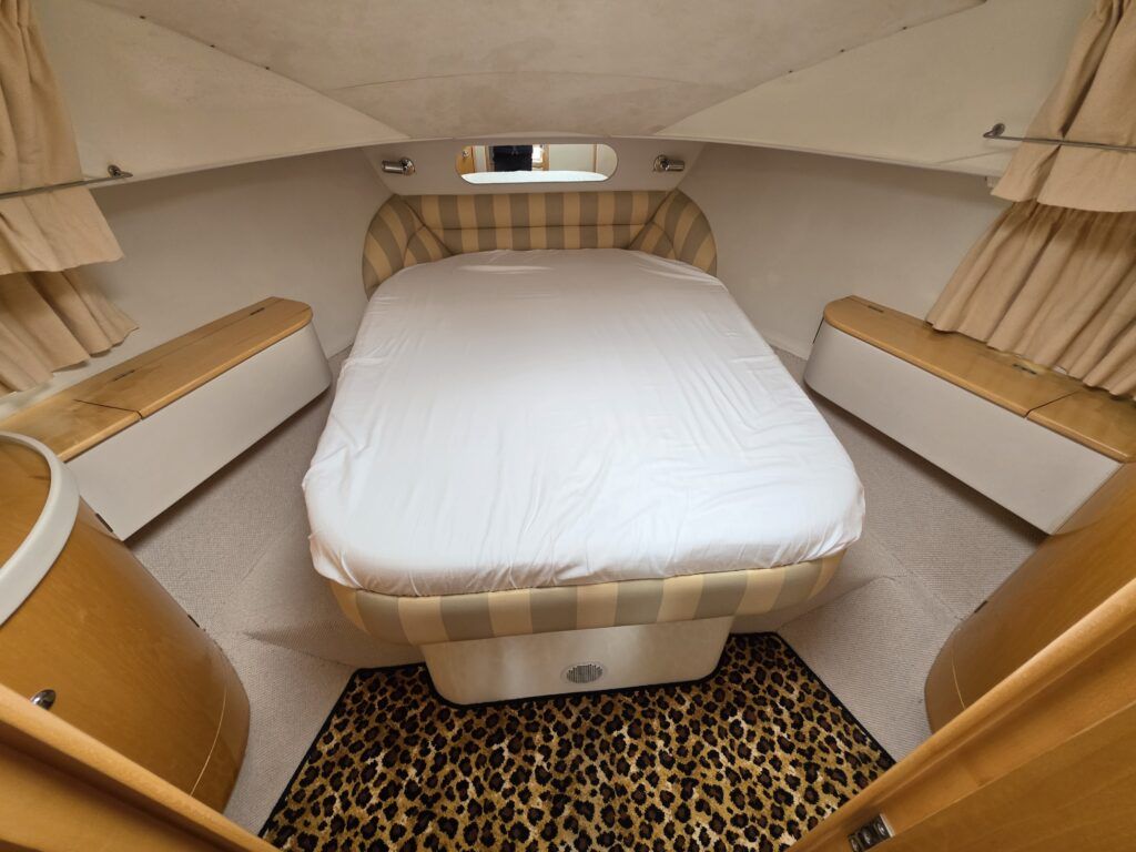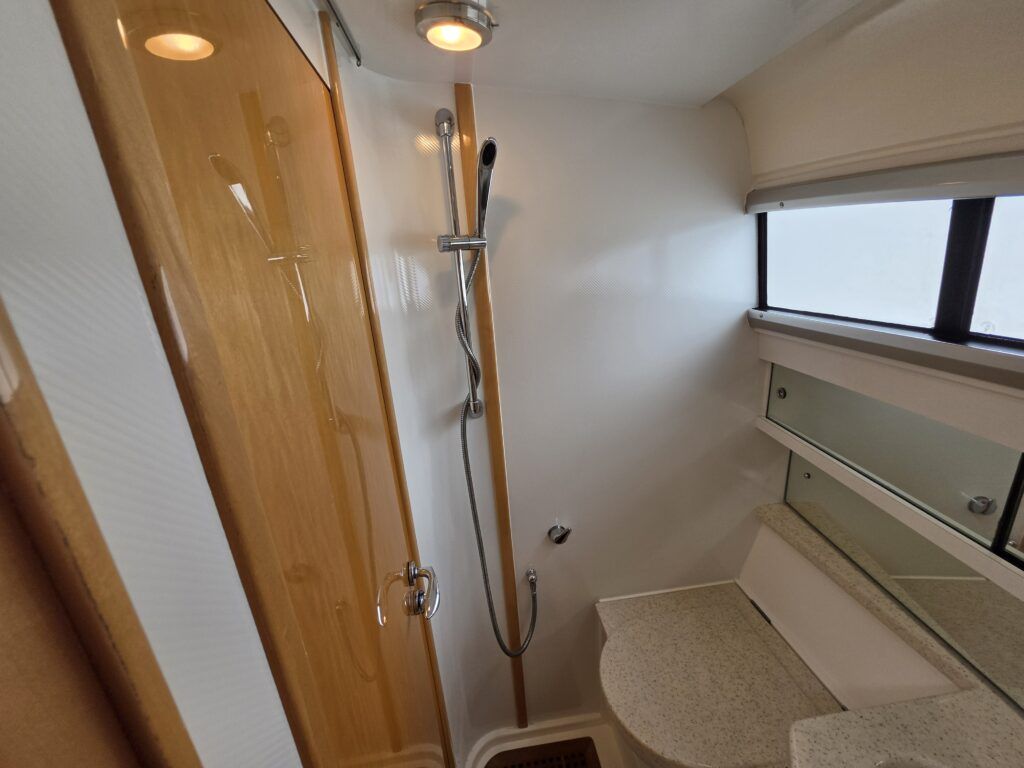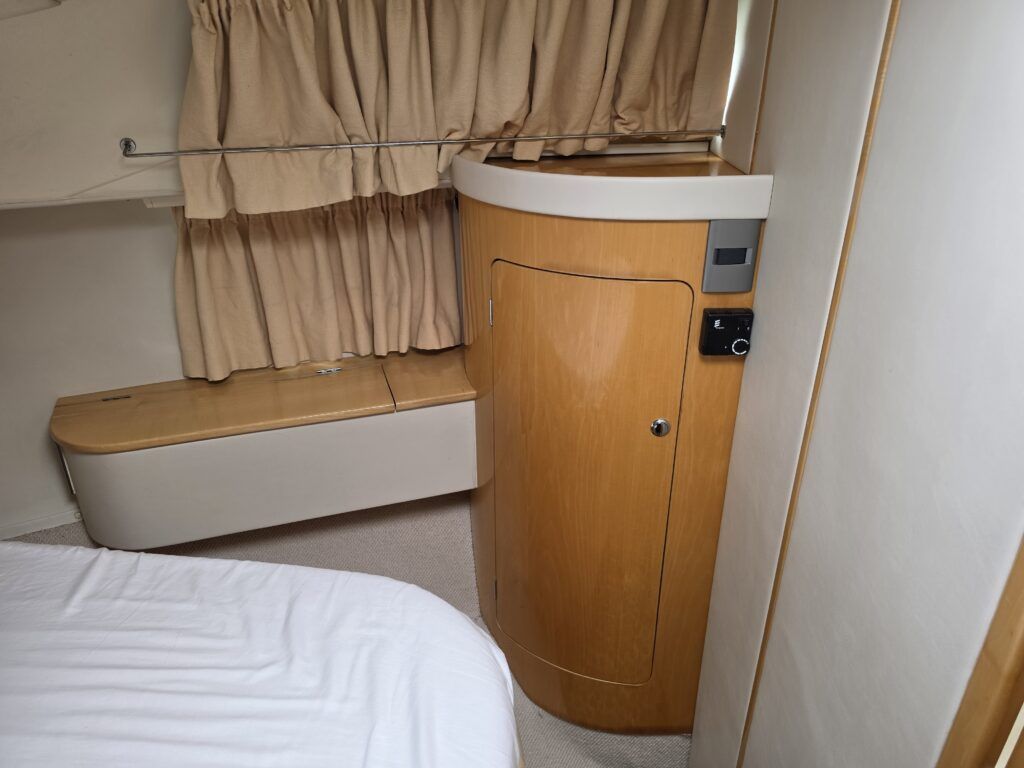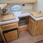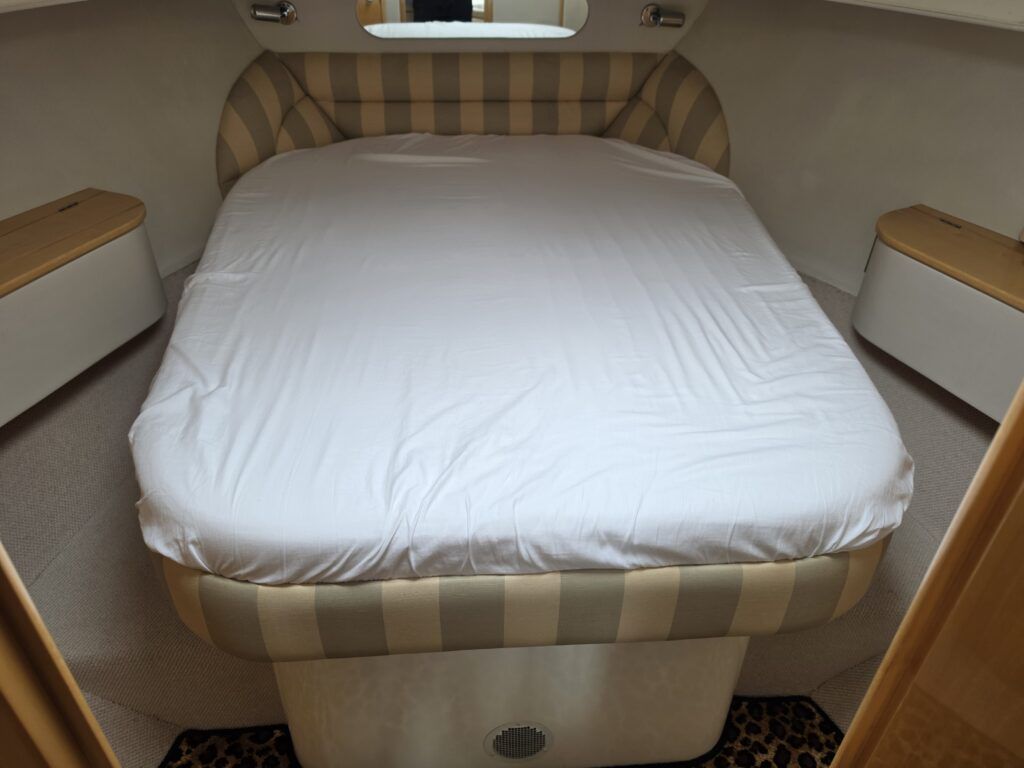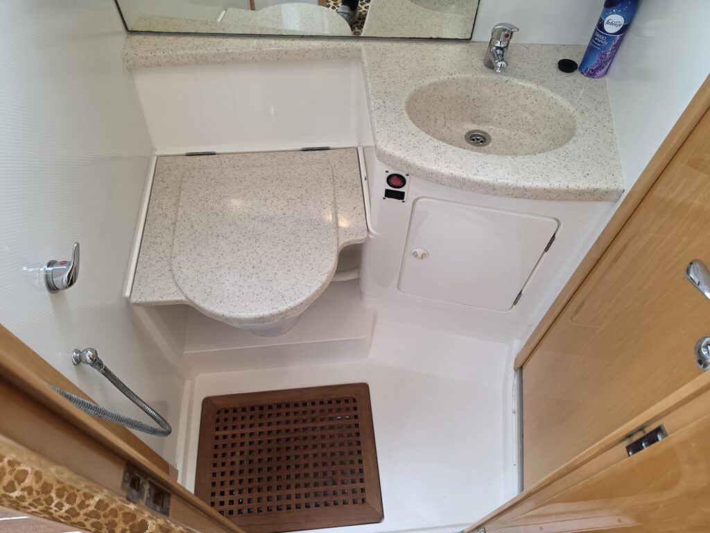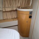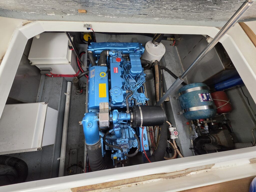 Falcon Capriole 1020 – 2003 -Powered by a Nanni 4.340TDI diesel engine on shaft drive. 4 berth accommodation with a separate aft cabin and forward island double berth. Specification to include: Bow and stern thrusters, hydronic heating, electric windlass, shore power, inverter, holding tank with gauge, electric engine hatch, teak cockpit/bathing platform, and full cockpit canopy. A well specified example of this highly sought after cruiser, offering comfortable accommodation and single diesel economy.