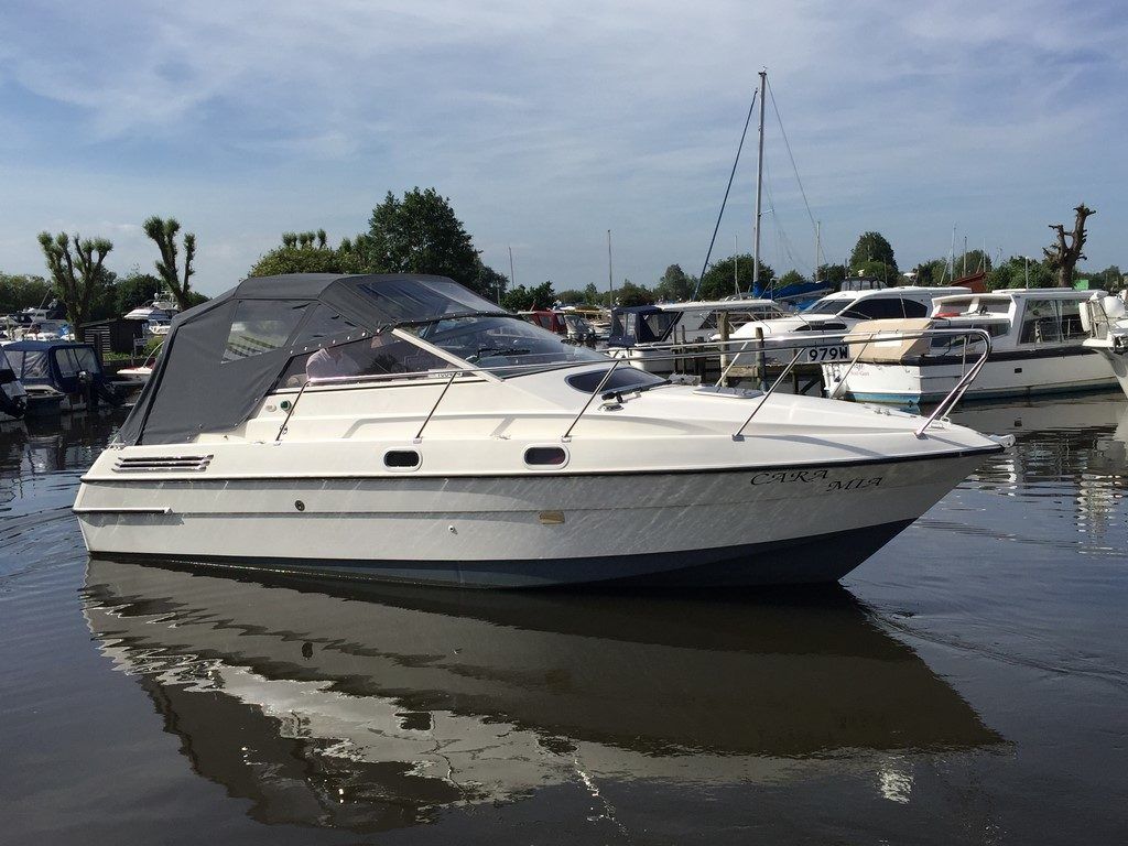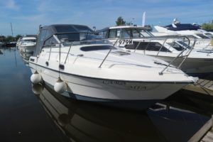 FALCON CAPRIOLE 27 – 1996, commissioned 1998 – Powered by a single Volvo MD22 50hp diesel. 4 berth accommodation with 1 toilet and 1 shower. Good specification to include, Fisher Panda generator fitted by current owner (18 hours use), warm air heating, holding tank and shore power supply with battery charger and immersion. Used to cruise the Broads in current ownership. Low air draft, single diesel and shaft combination. Ideal for cruising the inland waterways.