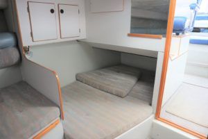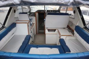 FLIPPER 717C – 1989 – Powered by a single Volvo AQAD31 130hp Turbo Diesel engine. 4 berth accommodation with 1 x toilet to holding tank, two burner hob, fridge, sink with hot & cold water, heating system, shore power, windlass. A range of Navigation equipment to include GPS, VHF, Navman tracker & compass, BSC 12/2019, engine and drive service in 2019. A good introduction in to coastal cruising with a generous cockpit and diesel economy.