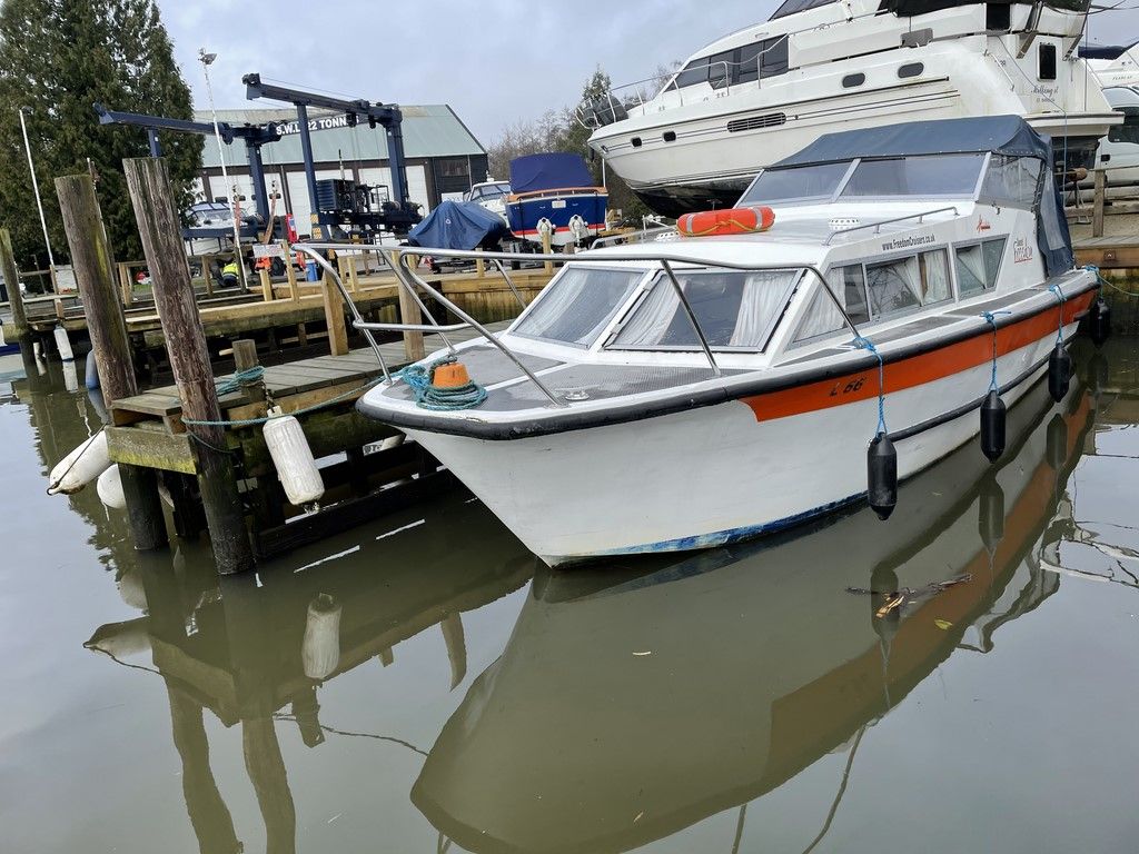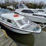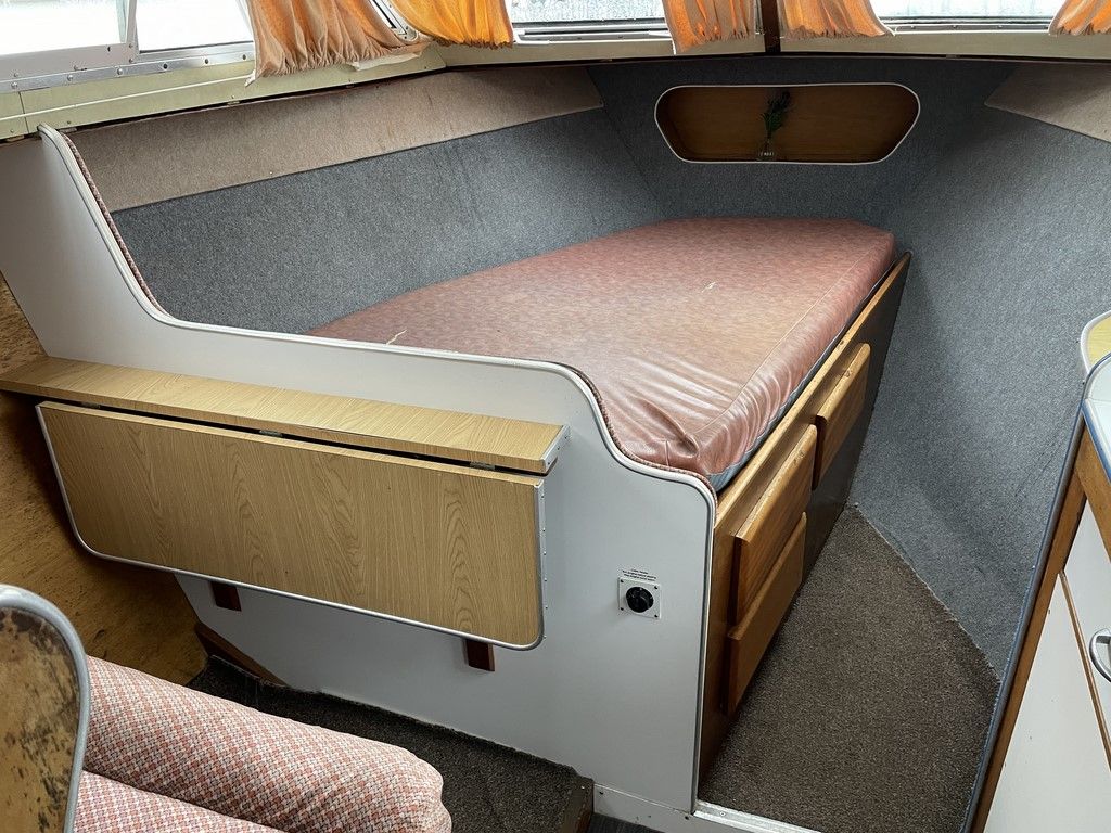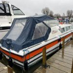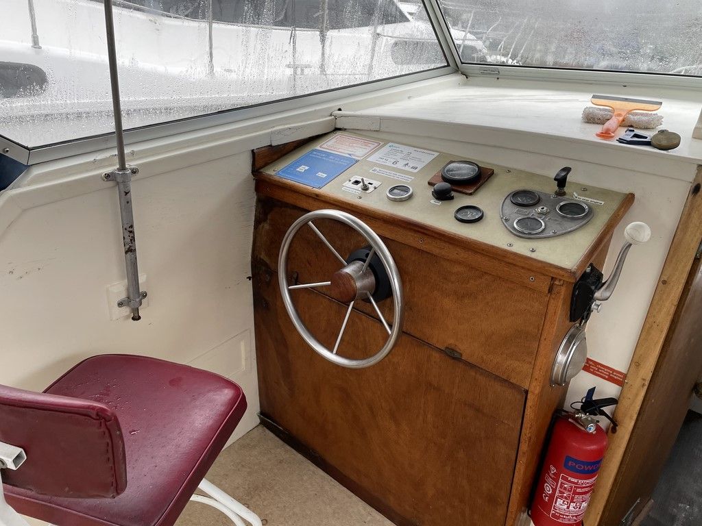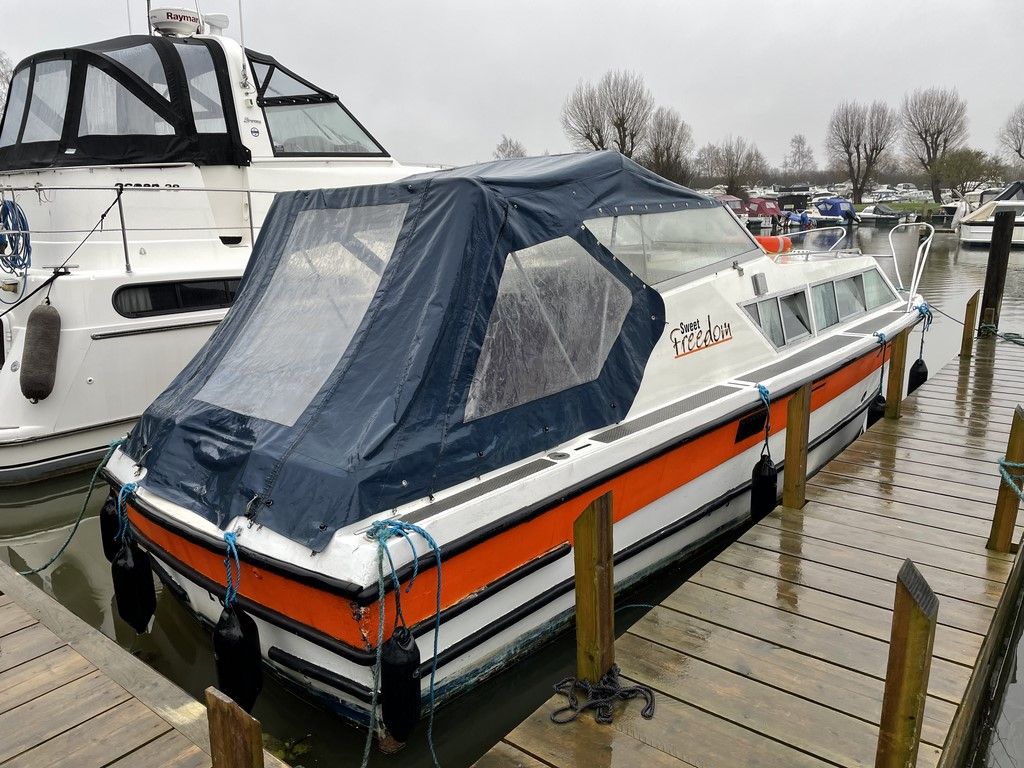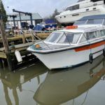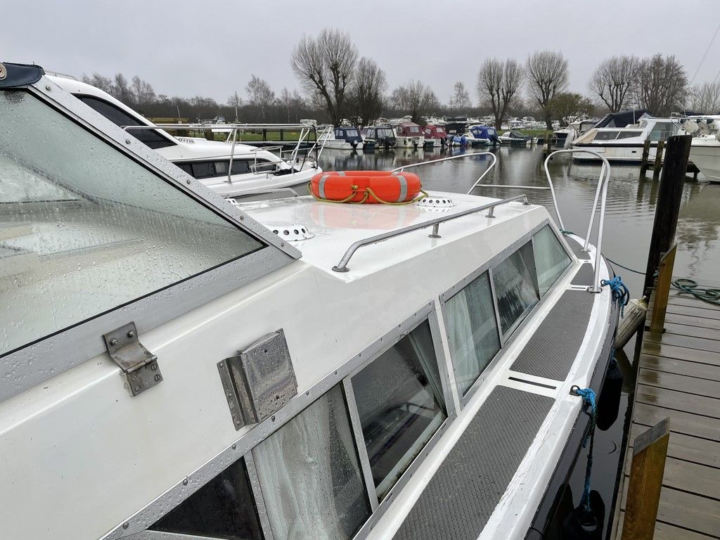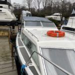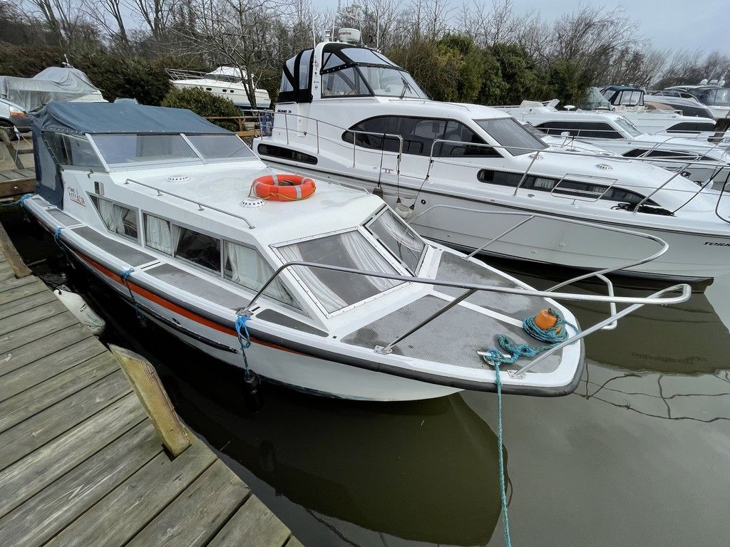 Seamaster 813 – Circa 1975 -1 x BMC diesel engine on shaft, 2 berth layout offering spacious accommodation with a generous toilet and shower compartment, heating, fully equipped galley, benefitting from folding windscreens allowing access beneath all Broadland bridges. Great project opportunity for this practical broads cruiser!