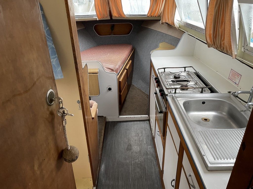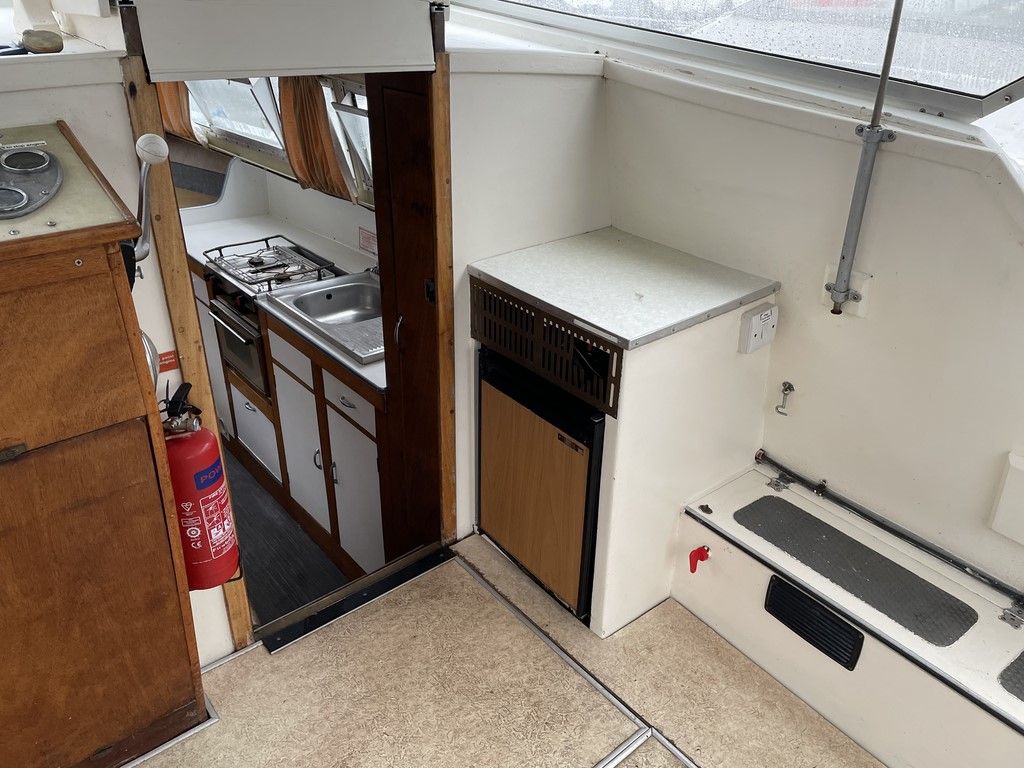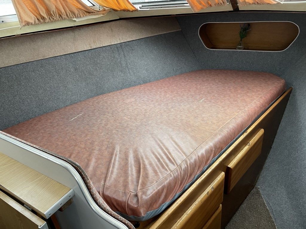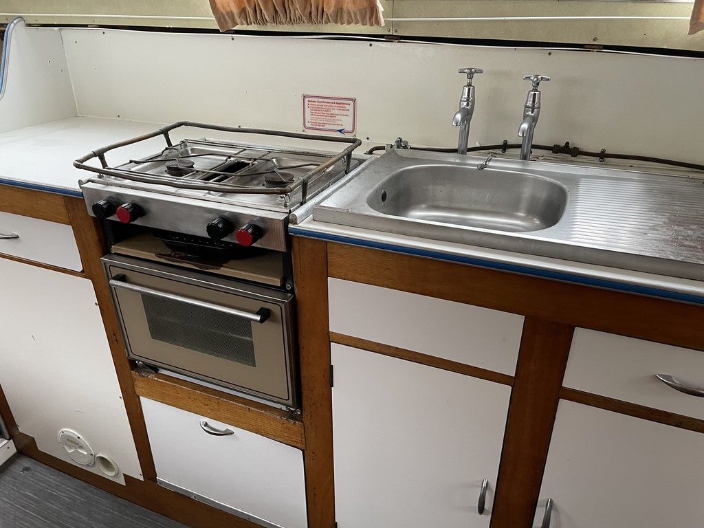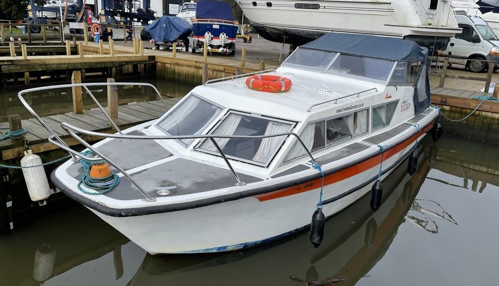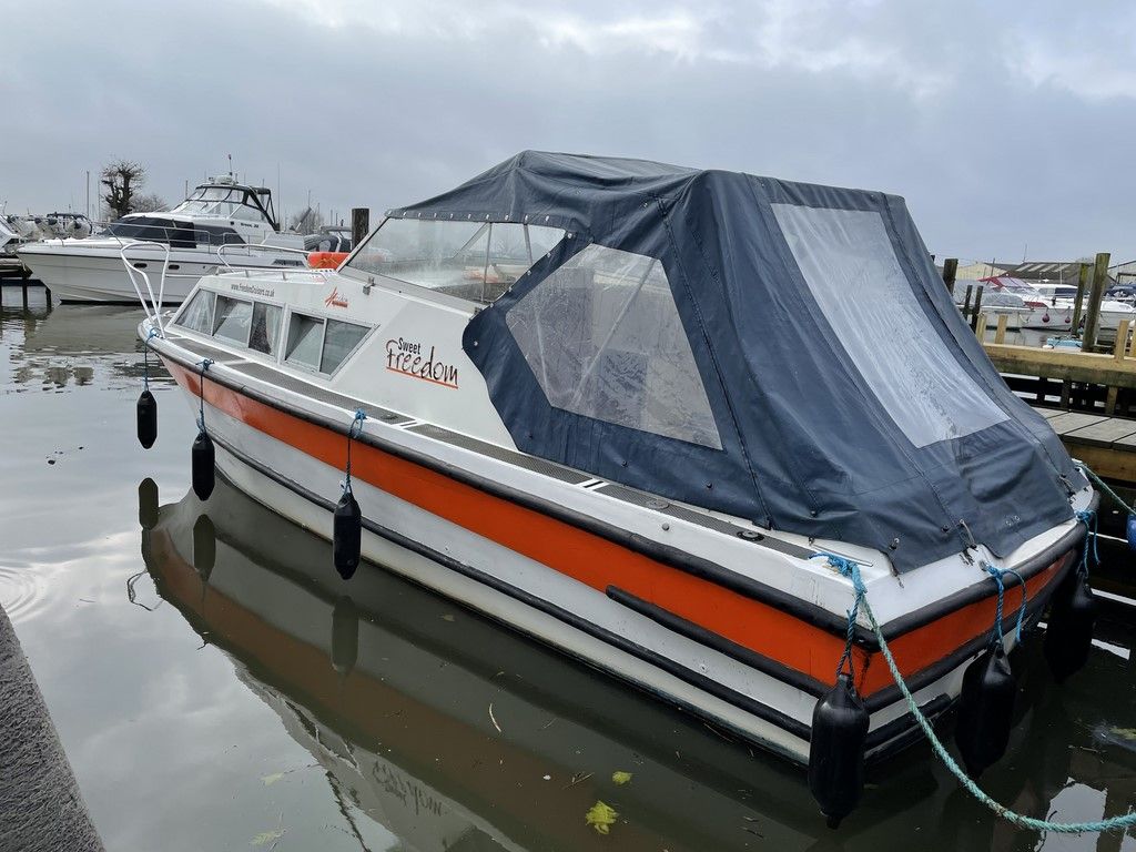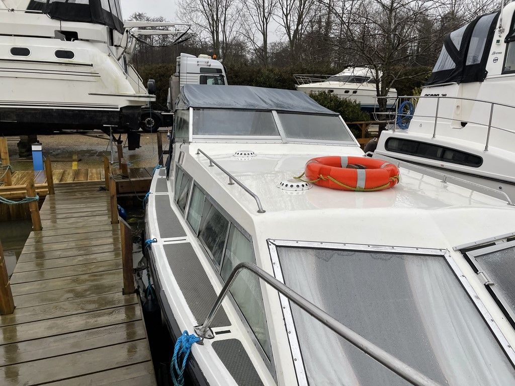 Seamaster 813 – Circa 1975 -1 x BMC diesel engine on shaft, 2 berth layout offering spacious accommodation with a generous toilet and shower compartment, heating, fully equipped galley, benefitting from folding windscreens allowing access beneath all Broadland bridges. Great project opportunity for this practical broads cruiser!